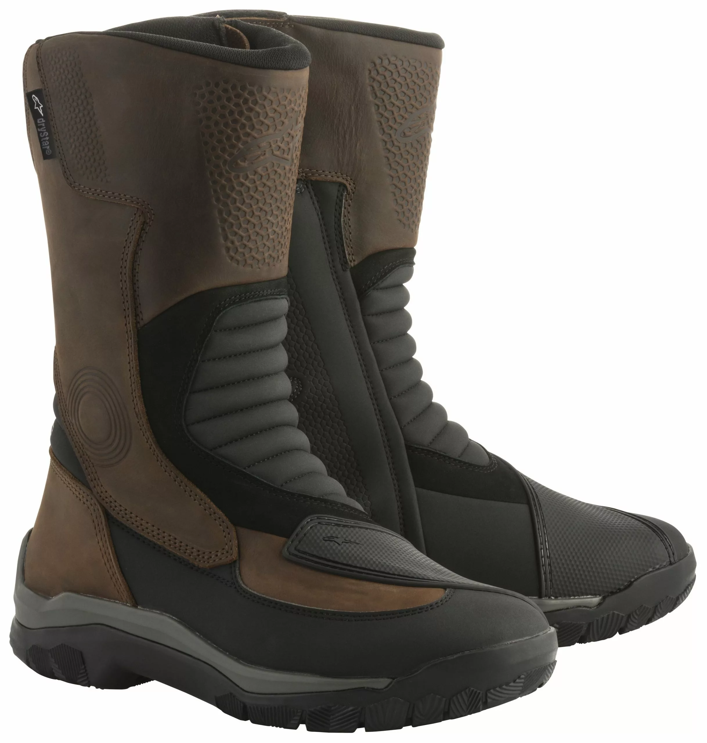Mile-long hikes for the perfect view or hundred mile days on dirt roads, the Alpinestars Campeche Drystar Boots do it all in style. Named after the Mexican state on the Yucatan Peninsula, the Drystar-equipped waterproof Campeche Boots are ready to take on the rain forests and mangrove wetlands that dominate the landscape. The leather upper is oiled for a handsome, durable finish and embossed strategically to accent the ankle cups and shin plate. Durable TPU protector inserts and shift pad keep the Campeche Boots functional and protective on the bike, while vulcanized rubber over a PU midsole keeps your feet planted firmly on the pegs or whatever terrain you choose to traverse.