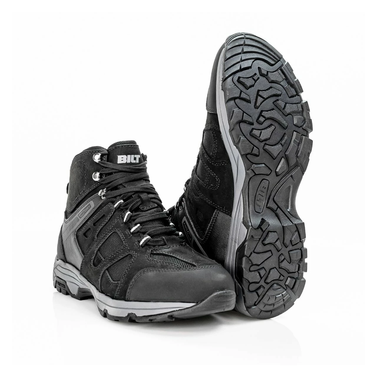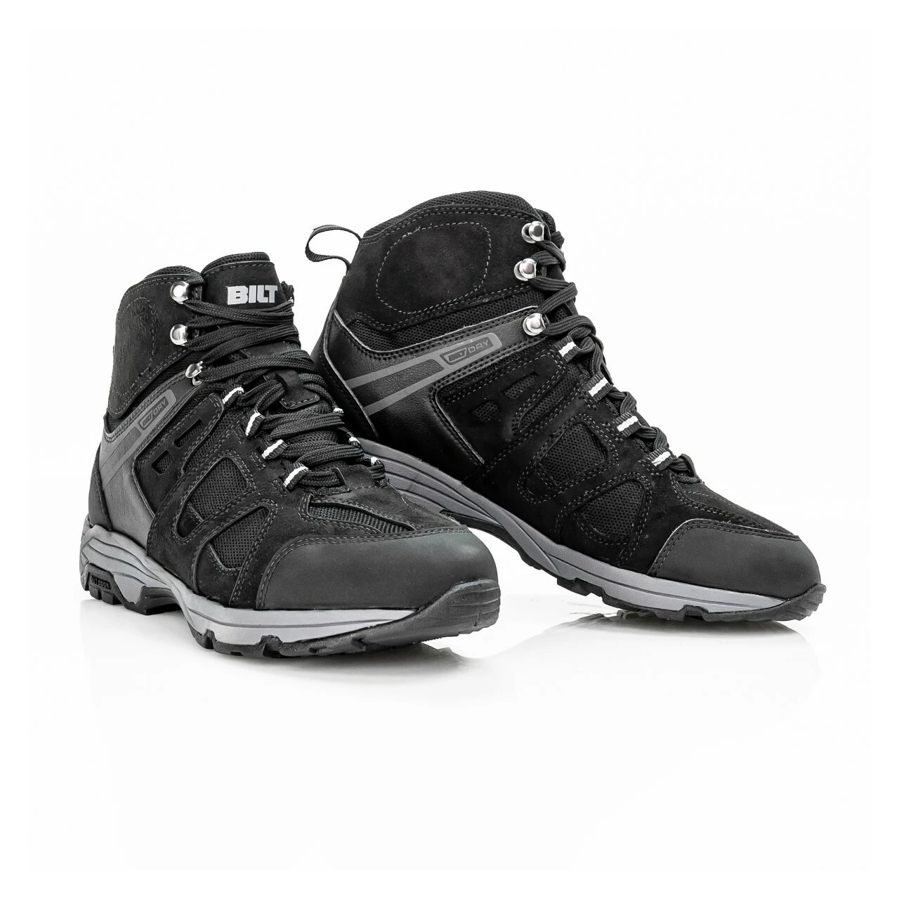 The BILT Canyon Waterproof Boots are a great everyday boot that can do anything you need. Constructed from an amara suede with microfiber upper with mesh inserts and a moisture wicking mesh liner keep feet cool while a waterproof breathable membrane keeps the water out. Full length shock absorbing midsole and non-marking lug outsole pair for better traction on and off the bike. Flat laces and nylon webbing lace guides prevent laces from getting caught in controls.