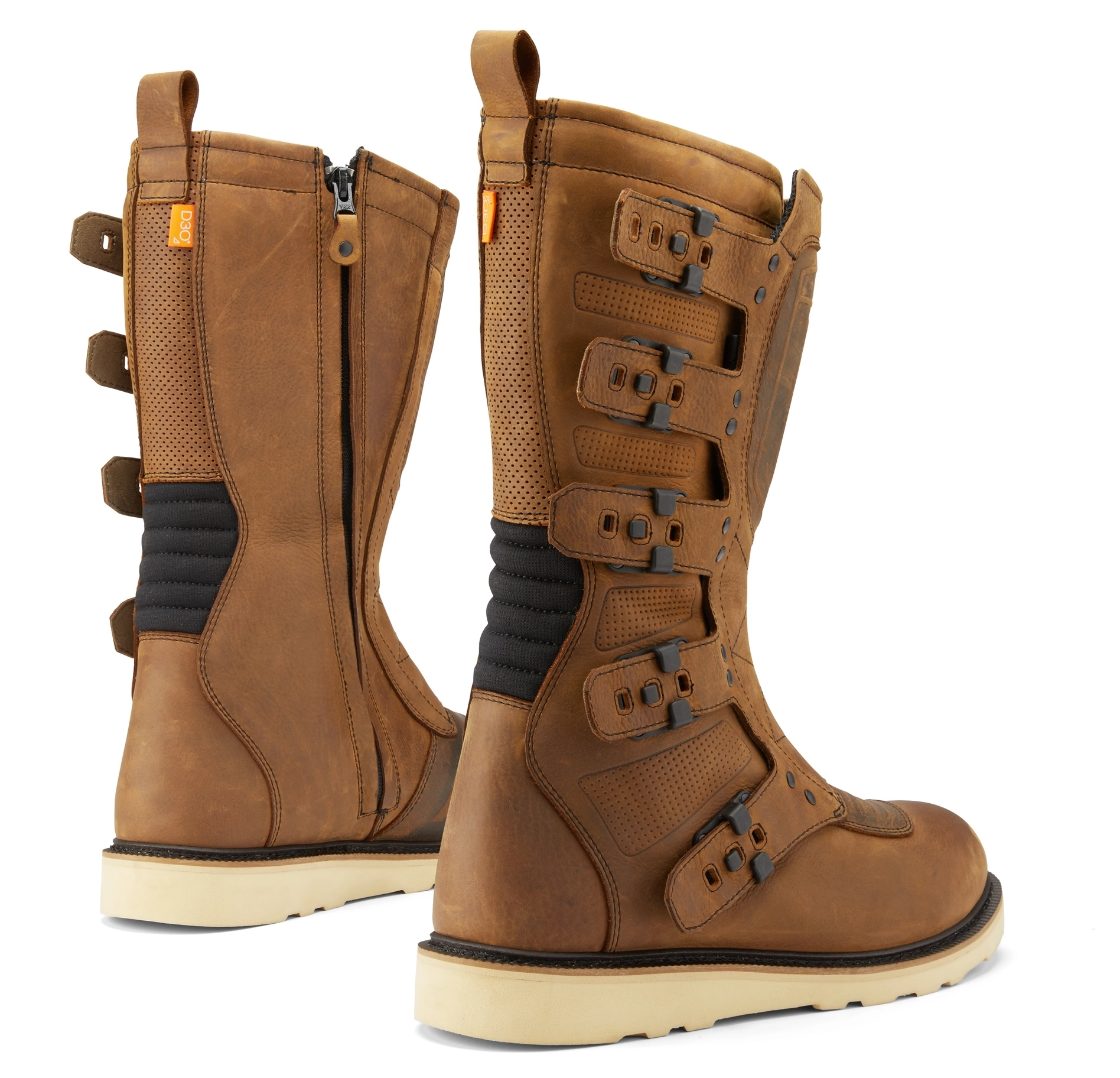 The Icon Elsinore 2 Boots have all the features and vintage motocross styling loved in the original Elsinore, but upgraded with materials and fit. The premium leather uppers are married to the slip resistant sole for rugged style. The Elsinore’s five strap chassis allows for an adjustable fit and includes a side zipper for easy on and off and customized comfort. Reinforced shin plate and internal D3O ankle inserts provide functional coverage should any ride take a turn for the worse. Finally, the high-rebound EVA foam insole provides all day motorcycle riding comfort and support.