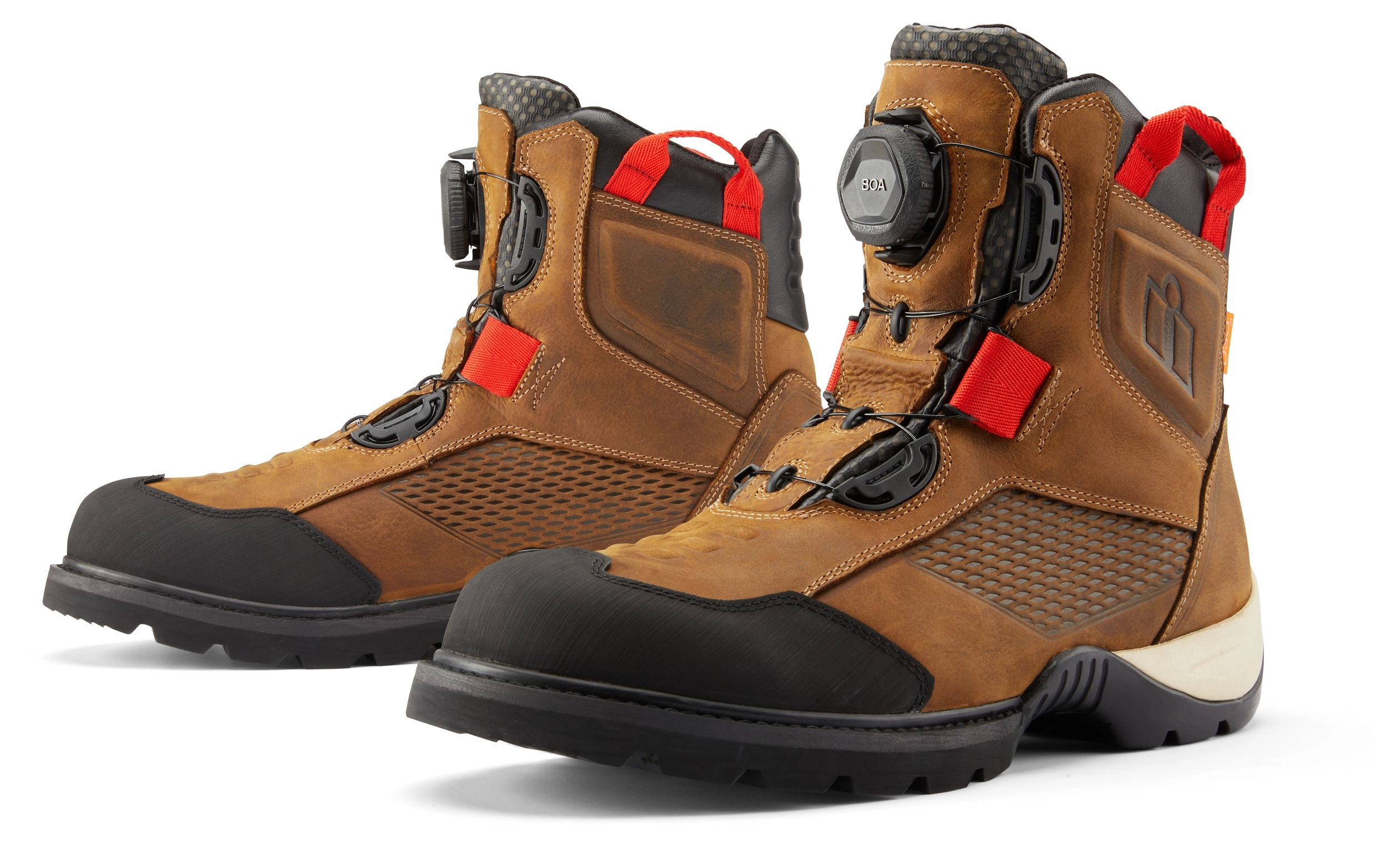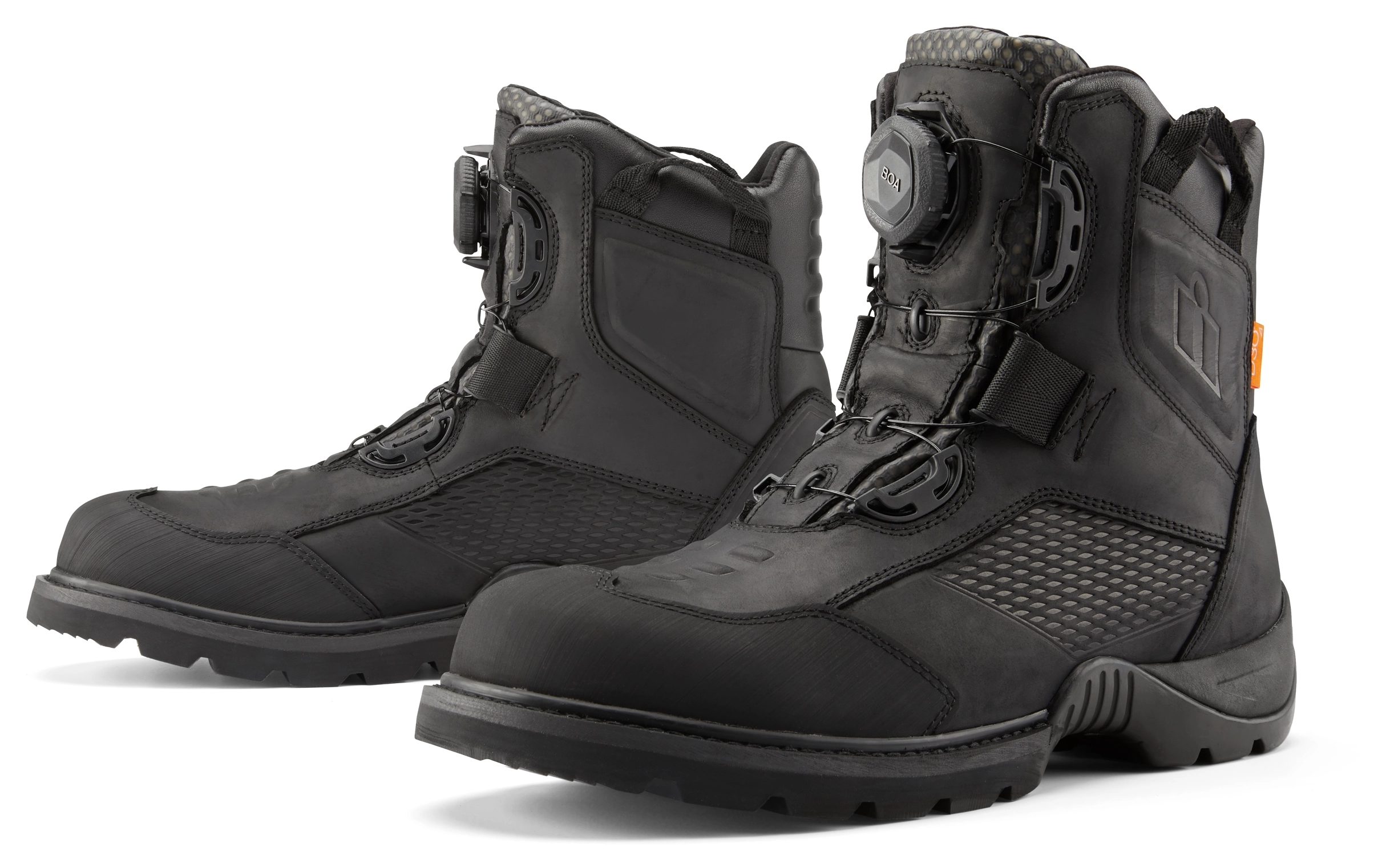 The Icon Stormhawk Boots are constructed from a premium leather upper featuring a water-resistant finish combined with an eVent Waterproof/Breathable liner for the ultimate in four-season comfort and function. A highly-lugged outsole provides certified motorcycle performance with an oil and slip-resistant rubber. The BOA lacing system allows for easy on and off while allowing a truly custom fit. Internally the Stormhawk boots feature dual D3O inserts to provide ankle coverage. Reinforced rubber toe-cap, reflective accents and shifter interface nubs complete the overachieving, any-condition Stormhawk Waterproof riding boot.