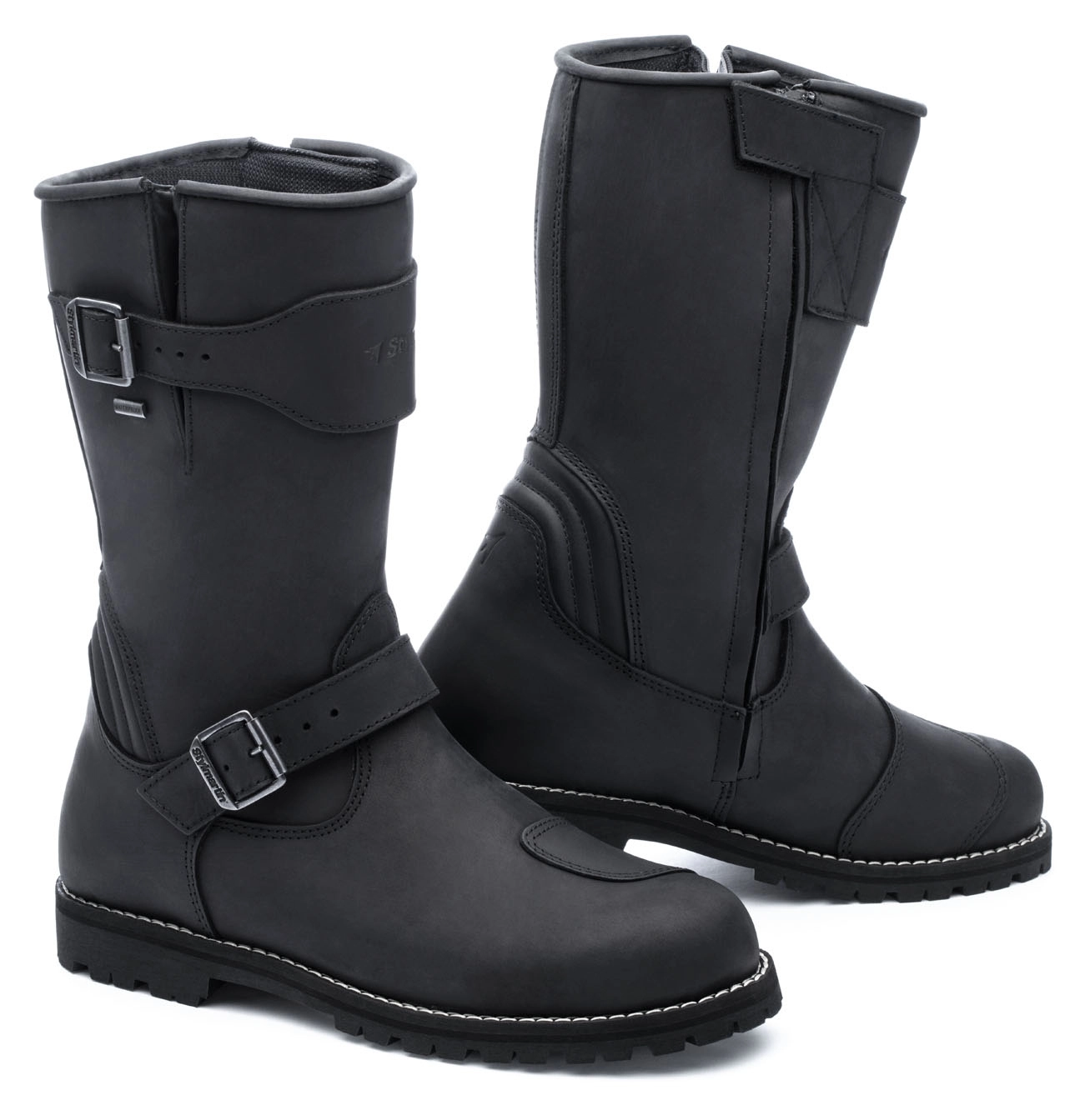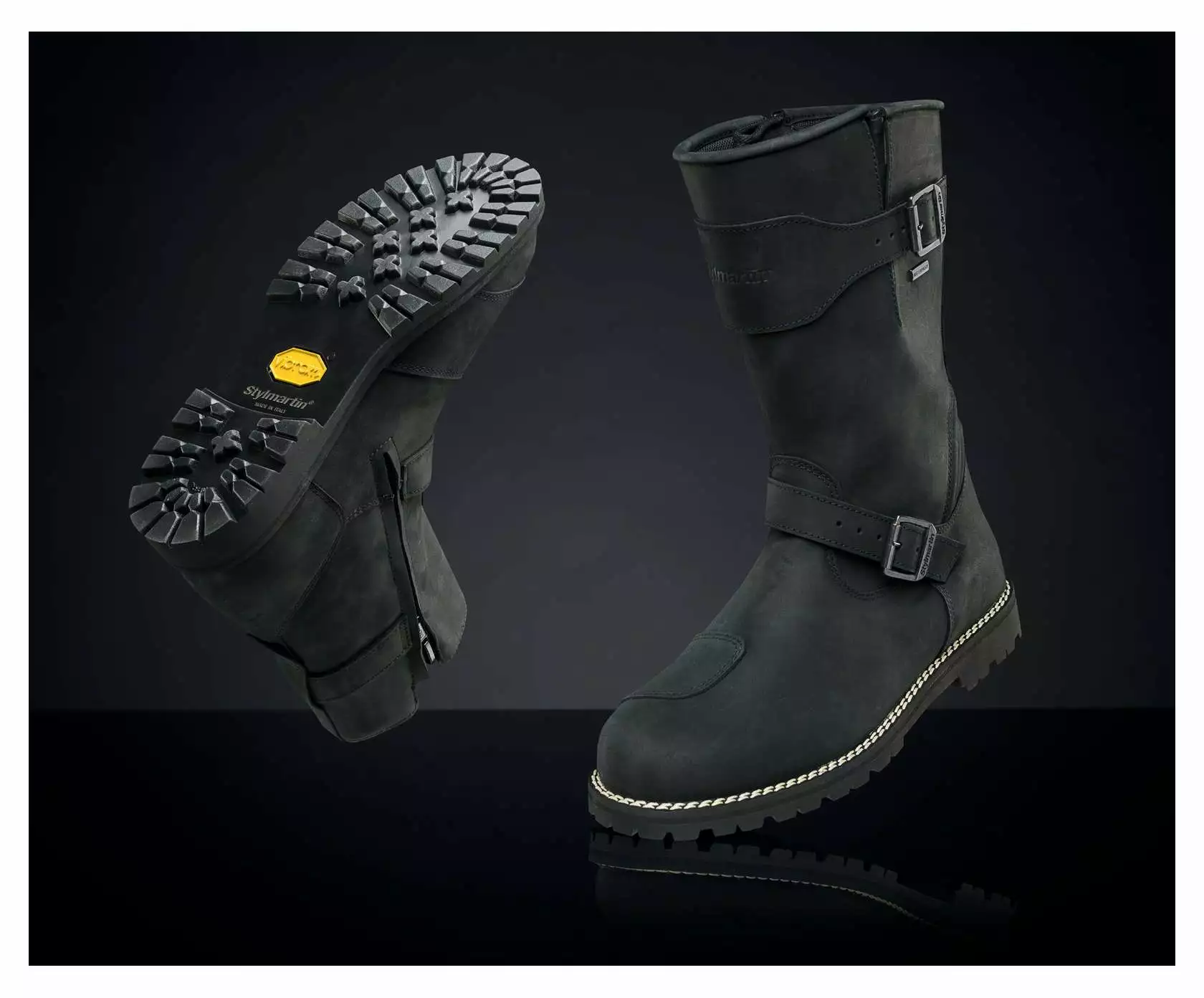 These full-height boots begin with full grain leather that is tanned with natural processes and then treated to a water repellent sealant. Beneath the premium cowhide lies a membrane that is both breathable and fully waterproof. Secured between these layers is malleolus protection at both sides of the ankle. Functional Stylmartin-branded twin buckles keep the boots firmly on foot, and entry is made easy with an inner ankle zipper and expansion gussets. Anchoring the boot is a Vibram oil-resistant sole that is lugged for adventure and fully replaceable. As the road beckons, be the legend.