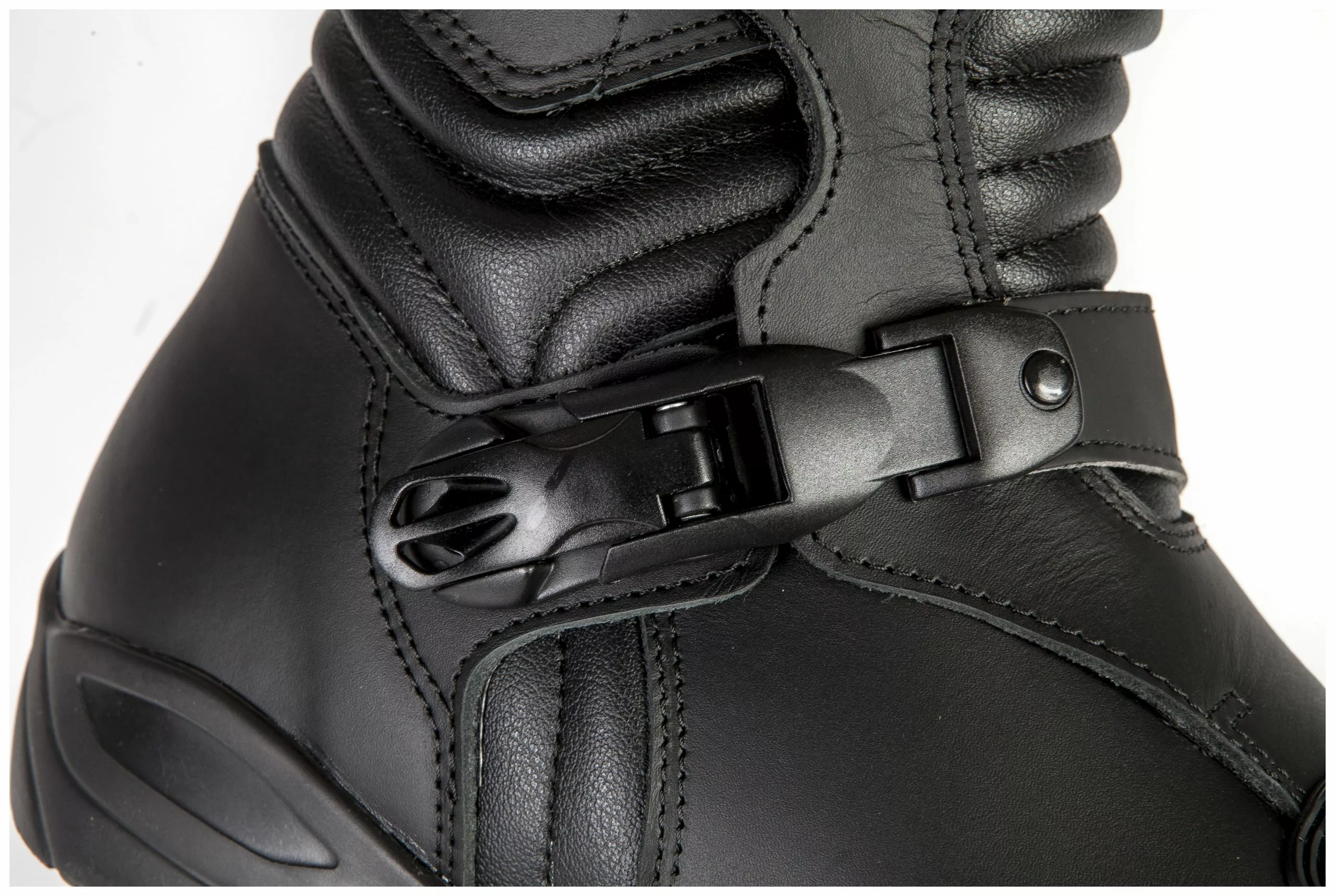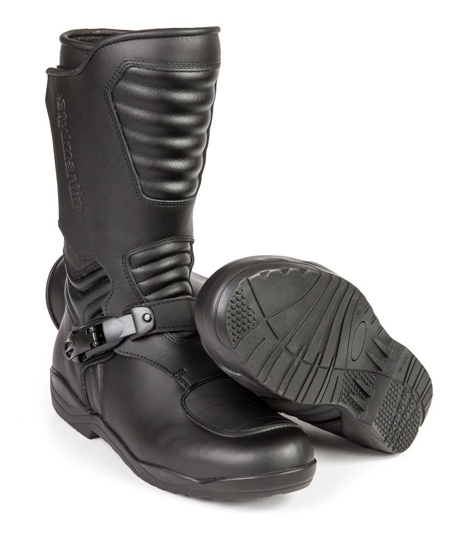 With a touring riders necessities in mind, the Miles Boots from Stylmartin are made of durable, full grain leather and complimented by a breathable waterproof lining. A leather gear shift protector fortifies the Miles in a high-abuse area while adding longevity to your purchase. An internal PU malleolus protection of both sides provides security and the VELCRO® brand fastening with an adjustable buckle closure offers a no-fuss fit. The Miles Boots also feature an anti-slip, anti-static and oil-resistant rubber sole and a comfortable, anatomically formed footbed that is replaceable.