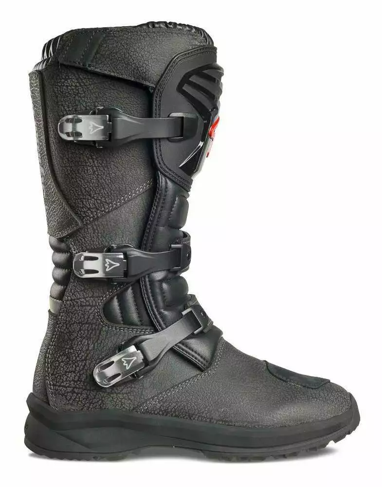 Lining the boot is a breathable, waterproof membrane that pairs nicely with the micro-perforated footbed for improved air circulation. Three replaceable MX-style buckles keep the boots securely on foot and the external tibia protector sports an air vent accented by a polished mesh screen. The unique contrasting matte panels that serve as the shifter pad and additional reinforcement at the inner foot are a touch of pure Stylmartin flavor.