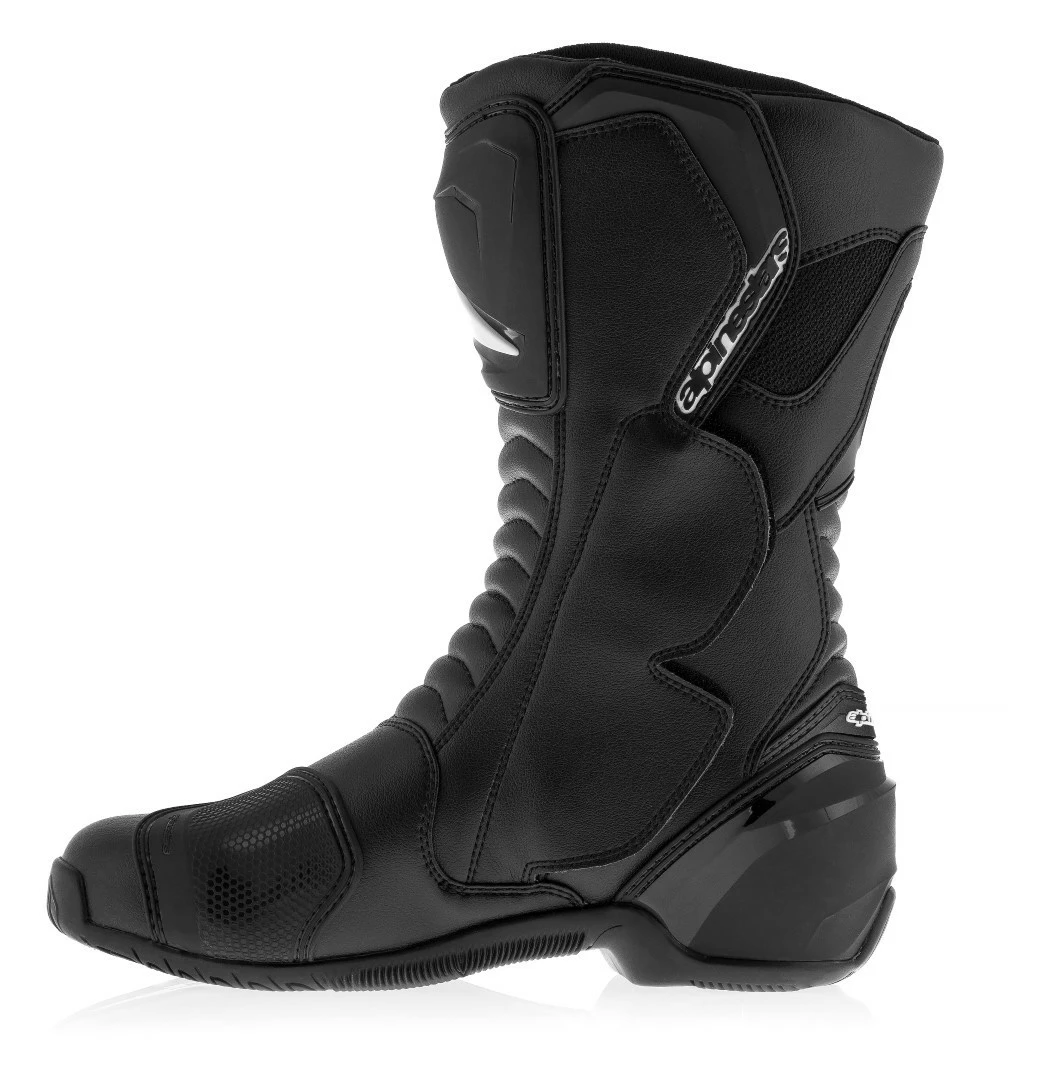 Alpinestars’ socal sport bike styling permeates their all-weather touring capable Alpinestars SMX-S WP Boots. Microfiber upper construction provides flexibility, durability and comfort. Breathable waterproofing keeps out water while still allowing your feet to breathe. A newly designed forefoot provides tactile feedback and full range of motion when operating your foot controls. TPU ankle protectors cushion your malleolus against impacts and replaceable toe sliders help to gauge lean angle.