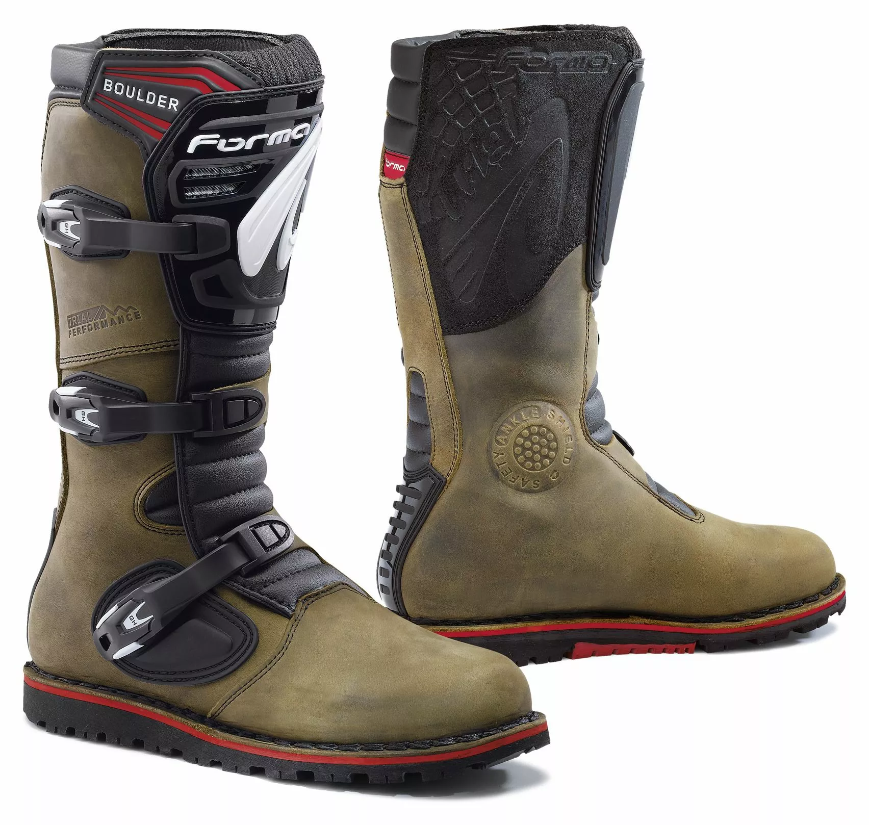 If you have been looking for a light duty off-road boot, or if you are in need of new trials boots, the Forma Boulder Boots offer a superb platform for many different types of riders. With a full-grain leather upper and trials anti-slip sole, the Boulder Boots offer incredible range of motion and are just as great for boulder hopping as they are for enduro or ADV riding. Integrated shin and ankle protection along with polyurethane nylon reinforcements give you CE certified protection when you need it, without all the excess plastic bits found on a regular off-road boot.