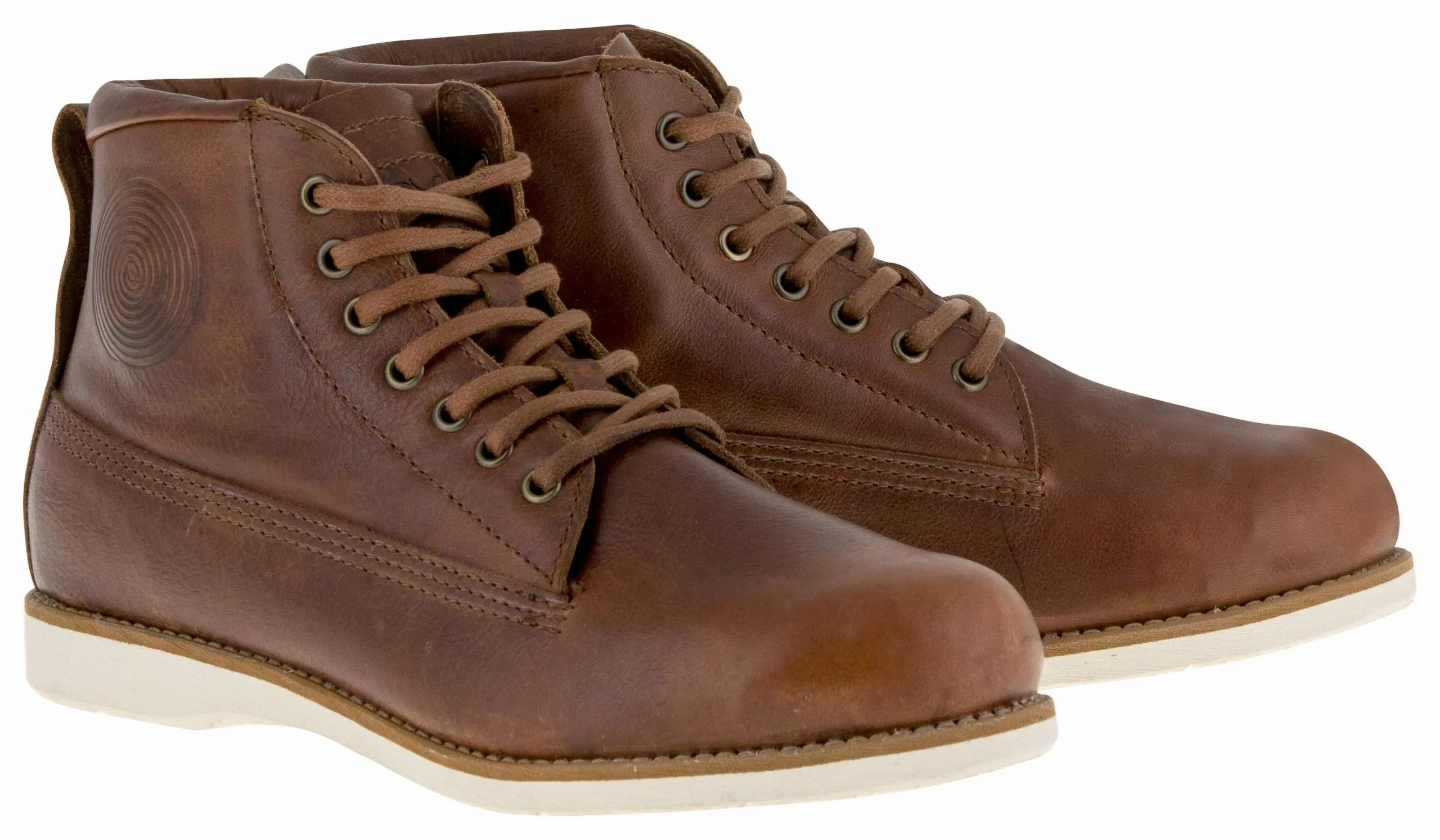 The artfully crafted Alpinestars Oscar Boots blend right into the moden man’s wardrobe. The russet brown full grain leather upper and vulcanized white rubber sole give the Rayburn boots a classic work boot look, but included ankle, heel and toe reinforcements, as well as pass the Cat 2 CE certification for safety. No matter what you’re riding, a pair of Oscar Rayburn Boots will look great, ride great and give you a leg up on protection over those tired ol’ work boots you’ve been wearing.