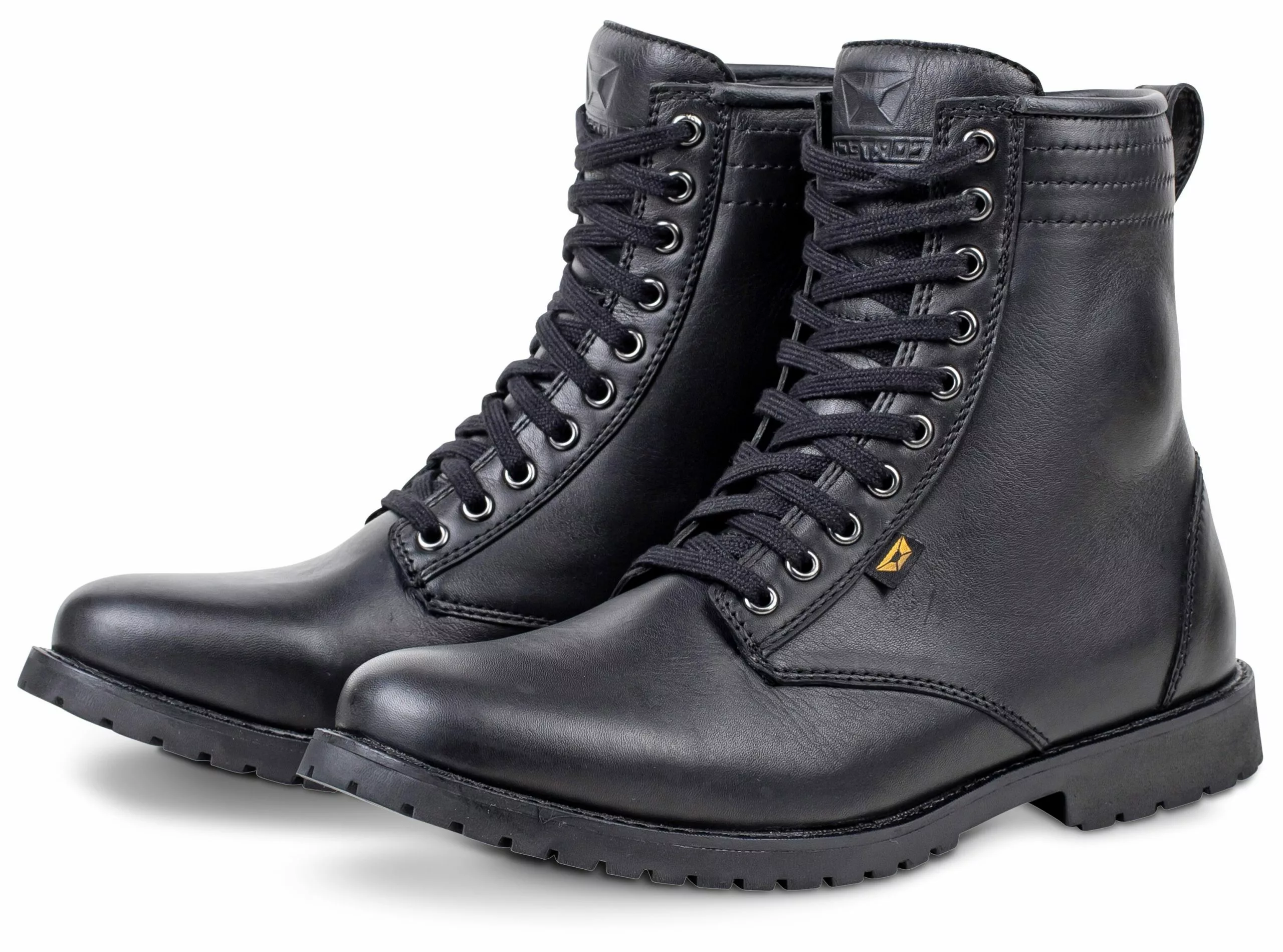 The Cortech Executive Boots have the looks to take you to the boardroom and well beyond. Behind the staggeringly handsome leather exterior is a waterproof Hipora liner and protection at the ankle, heel and toe. Ten eyelets run the length of the gusseted tongue – straight to upper management.