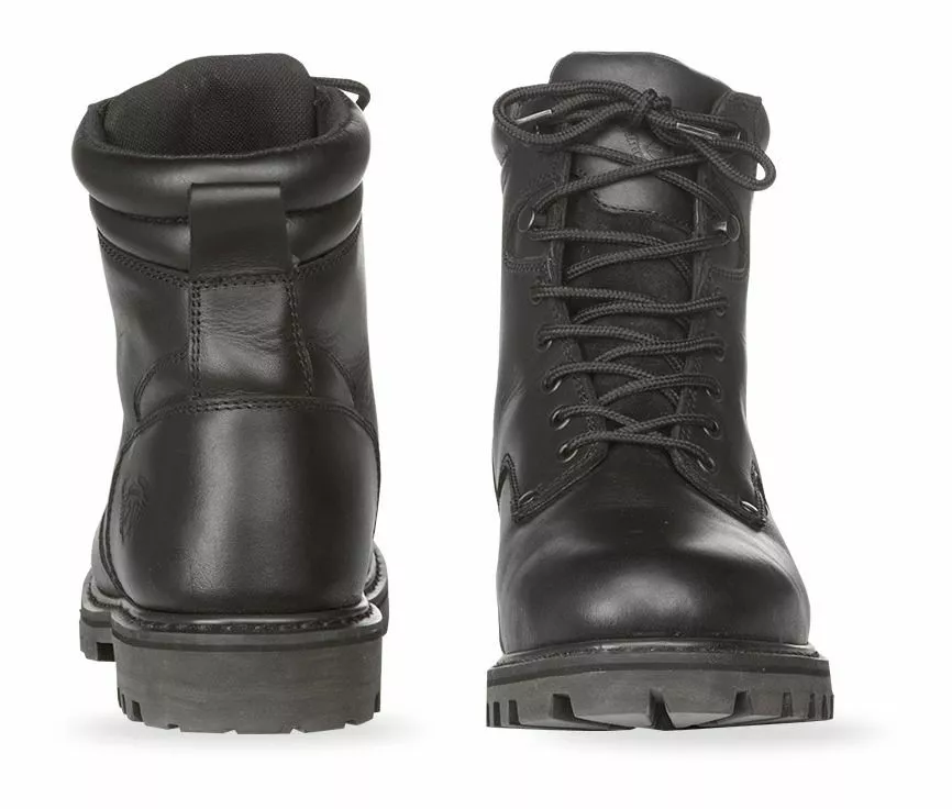 The Highway 21 RPM Boots are a simple black full grain leather work boot with a 100% waterproof HiPora lining to keep your dogs bone dry when riding in wet weather. The RPM Boots are a regular lace up boot for regular riders.
