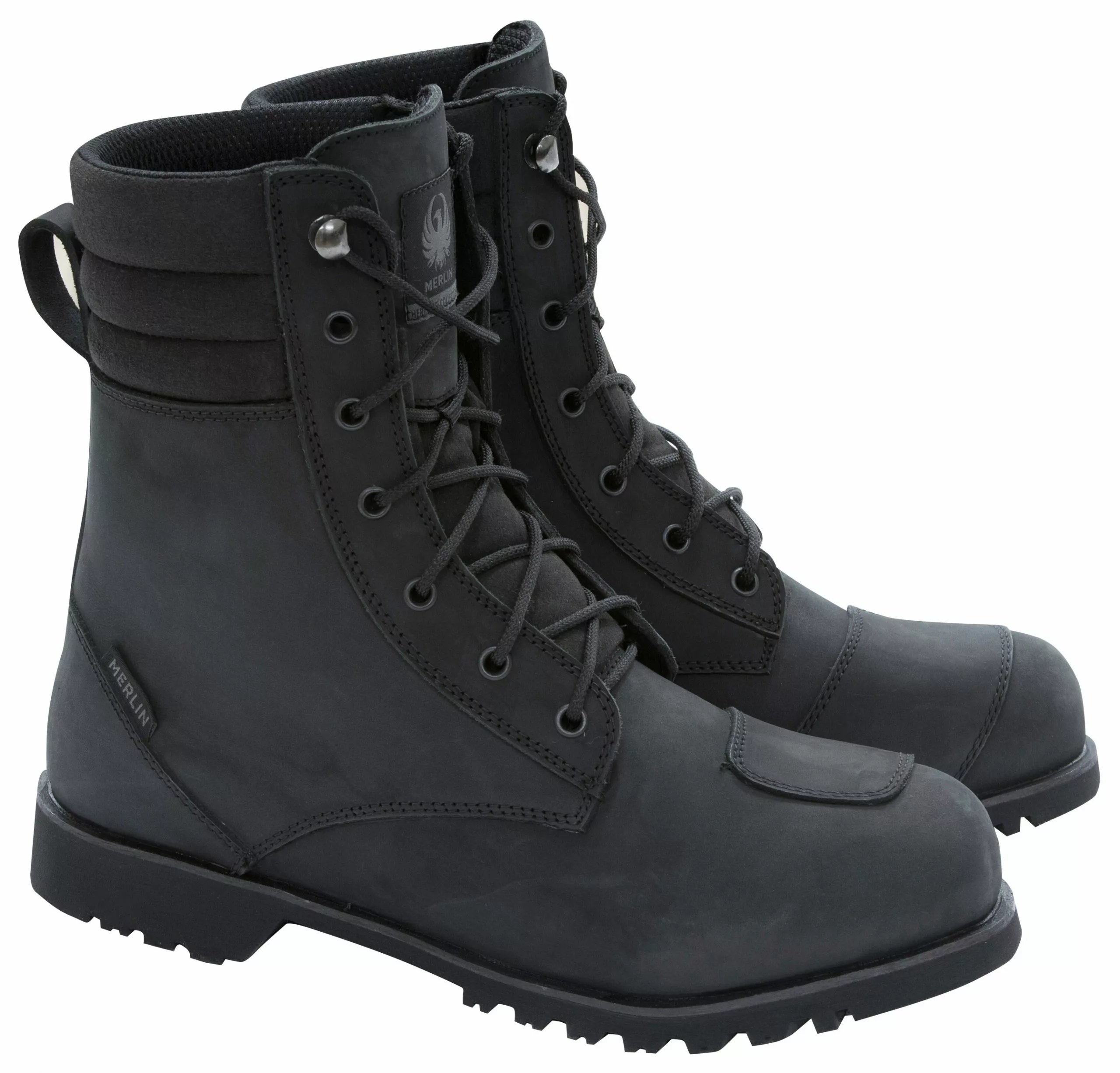 Merlin Drax Boots are work boots with motorcycle specific features. Hipora waterproofing keep your feet dry. Reinforcement at the heel, ankle and toe provide motorcycle specific protection. A CE level footbed provides support for footpegs and rigidity to your foot in place.