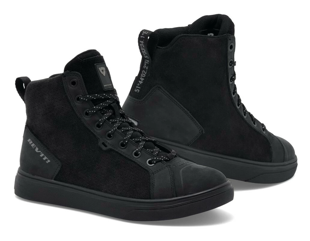 The Arrow Riding Shoes from REV’IT! blend CE rated rider protection into a casual “dunk” style riding shoe. A highlight of the Arrow Shoes is the three uniquely finished types of cowhide that help animate the Arrows’ simplified design. Starting with the outer side panels, REV’IT! applies perforated, oiled suede. The inner panel of the upper is again oiled suede but without perforation for increased durability against control snags and hot engine parts. Leather at the tongue, eyelets, heel and toe cap are all soft nubuck.