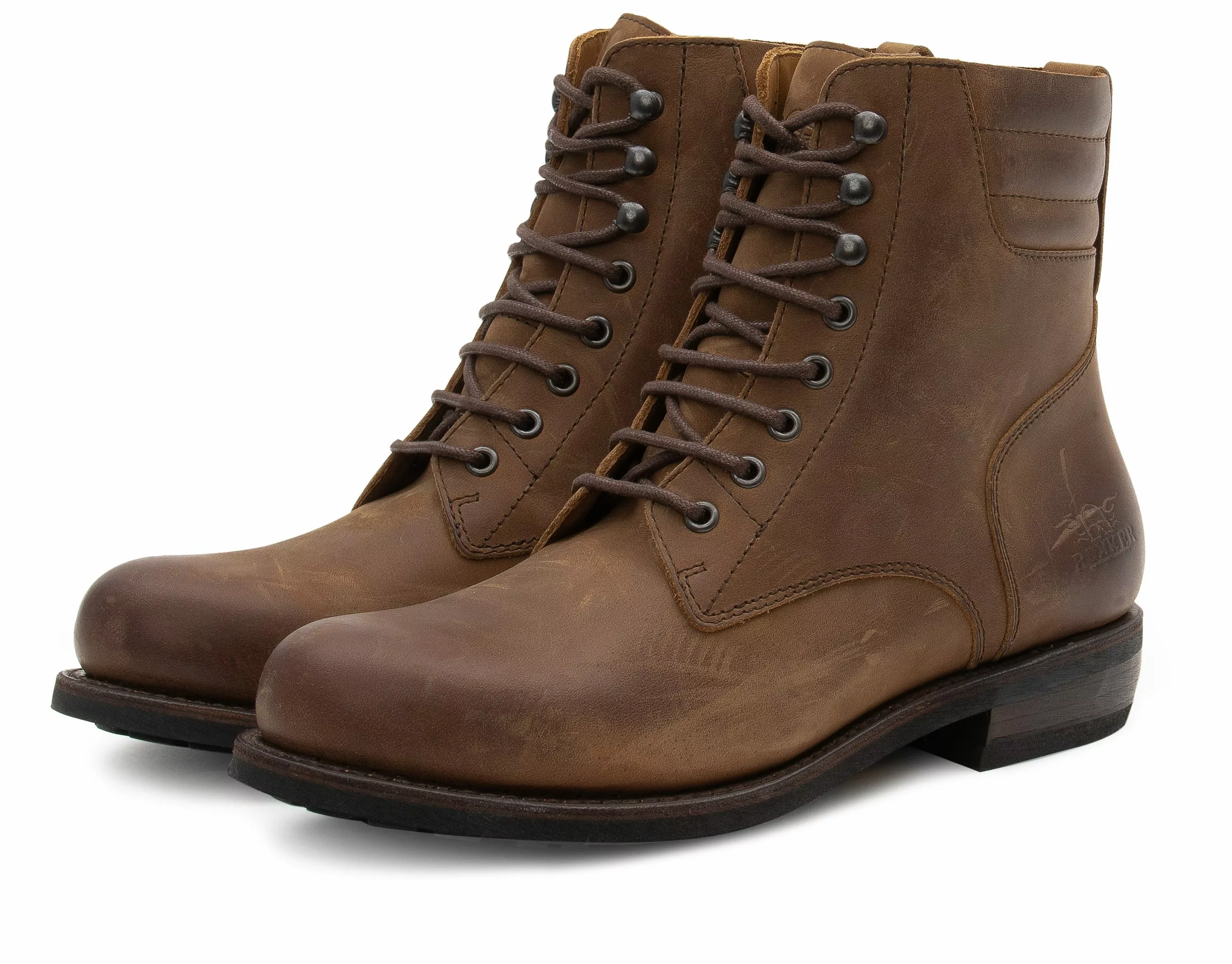 Rokker is known the world over for their high-quality vintage-inspired motorcycle gear, and boy do the Urban Frisco Boots fit that bill. These boots are handmade in Portugal with vintage greased cowhide leather, that not only gives them a hard-worn and aged look, but also helps the leather repel water and other unwanted liquids.