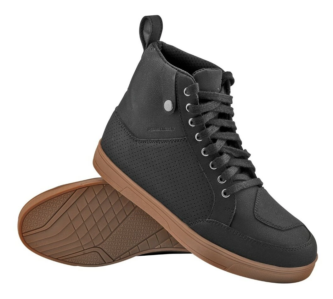 The United By Speed Shoes from Speed and Strength are a smooth-operating, perforated riding shoe with motorcycle features and protection. The synthetic leather upper provides abrasion resistance and airflow mixed into simple, casual good looks. A reinforced shifter pad at the toe resists wear as you stir your coffee. Internally, TPU reinforcements at the toe, heel and ankle help dissipate impact forces and protect the foot bones in the event of a spill. The anti-slip sole is comfortable both on and off the bike, and the United By Speeds achieve an overall CE certification for protective riding footwear.