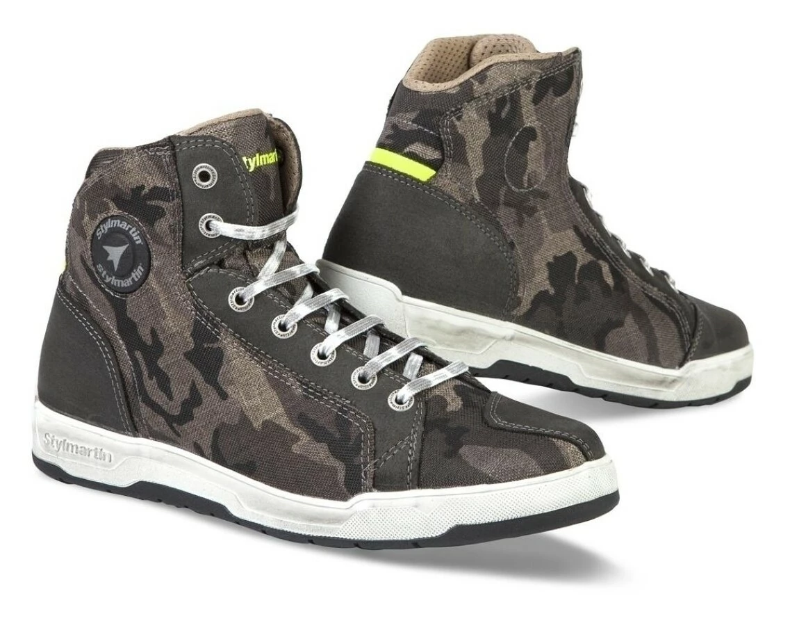 Although more commonly identified with birds of prey or their ancestral velociraptor, raptor literally means “that which takes by force.” In the case of the Stylmartin Raptor EVO Shoes, both connotations accurately capture the temperament of these stealthy all-weather riding shoes. Touting multi-season functionality via a full waterproof and breathable membrane concealed beneath camouflage fabric, micro-perforated footbed, and swanky oiled leather accents, the Stylmartin Raptor Shoes have seized a position at the top of the food chain- a true apex-predator in their class.
