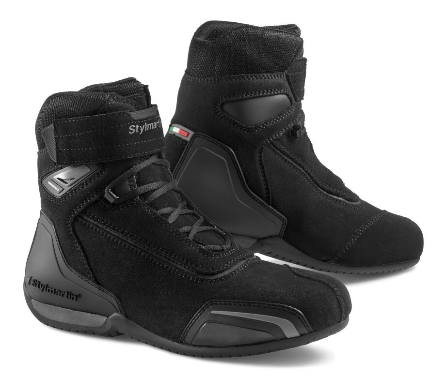 The Stylmartin Velox WP Boots match a waterproof liner with a suede leather and fabric exterior to give a casual riding shoe touring features. Standard laces are secured by an ankle strap so you can ride without worry of getting your bunny ears snagged.