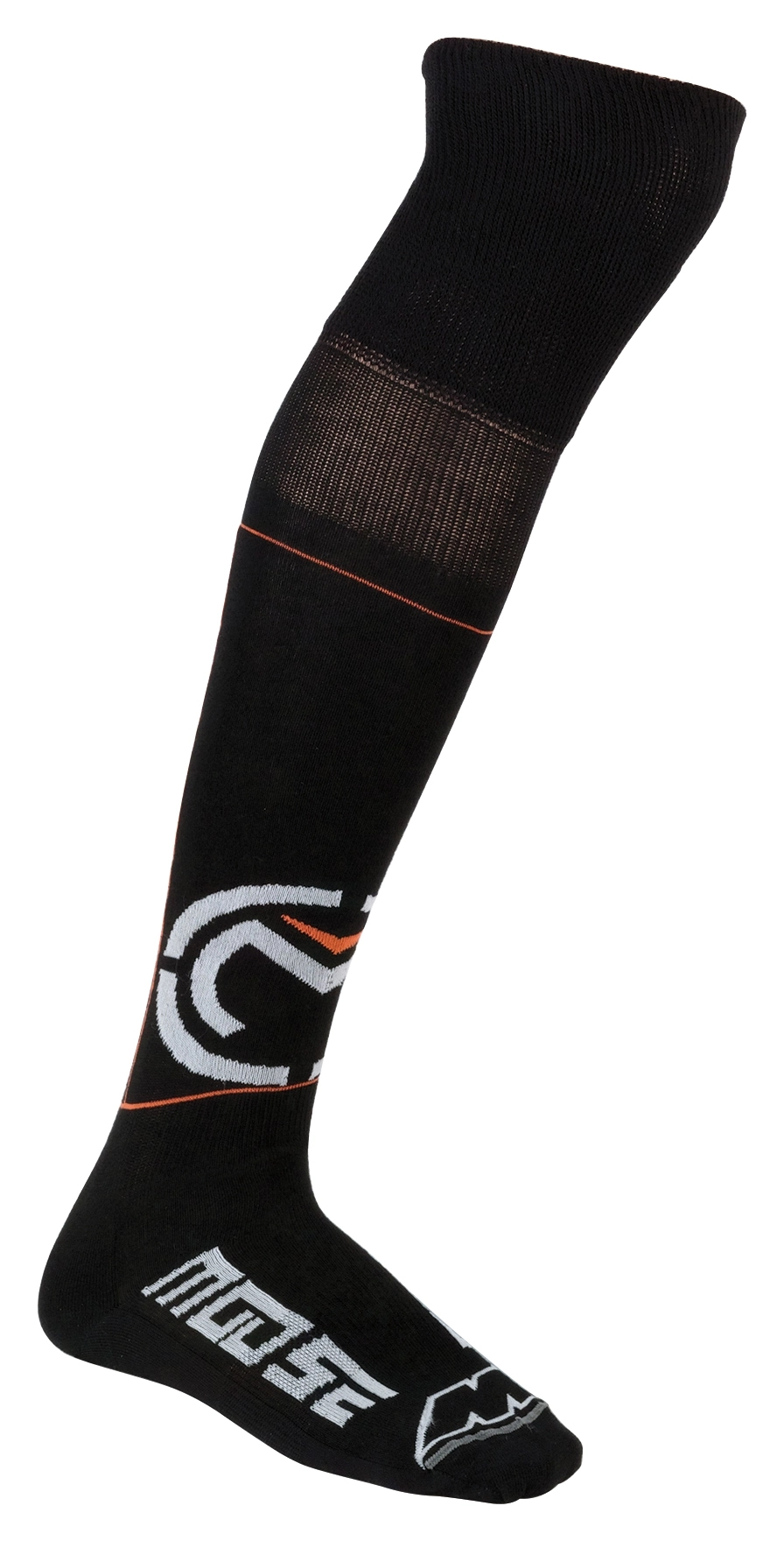 The Moose Racing M1 Knee Brace Socks are mid-thigh length with a low profile cuff and stretch bands to keep the M1 sock in place under your knee braces.