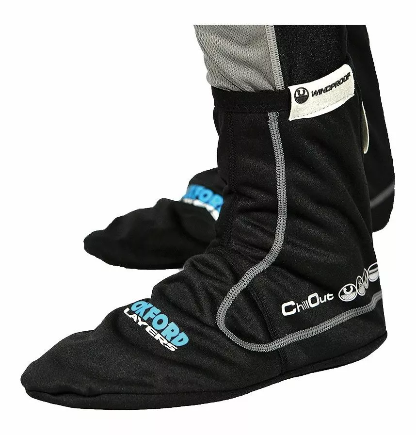 The Oxford Chillout Windproof Socks provide an extremely effective mid-layer barrier against wind chill. Perfect for use with Oxford CoolDry and WarmDry base layers. At 32⁰F, the wind chill factor at just 24mph is approximately 3⁰F. Add to that the impact of rain at high speeds and it is easy to see how a rider’s concentration could be adversely affected. The correct use of ‘layering’ can dramatically reduce the effect of wind chill as well as maintain comfort through the wicking of moisture away from the skin. The all-new ChillOut range of Oxford Layers uses the very latest in material technology to keep riders warm and comfortable in such extreme conditions. The key ChillOut material is water-resistant, windproof and breathable; it also has an insulating fleece lining, which is gentle on the skin. In addition, stretch panels are employed in areas requiring maximum flexibility, so that comfort is not compromised in any way.