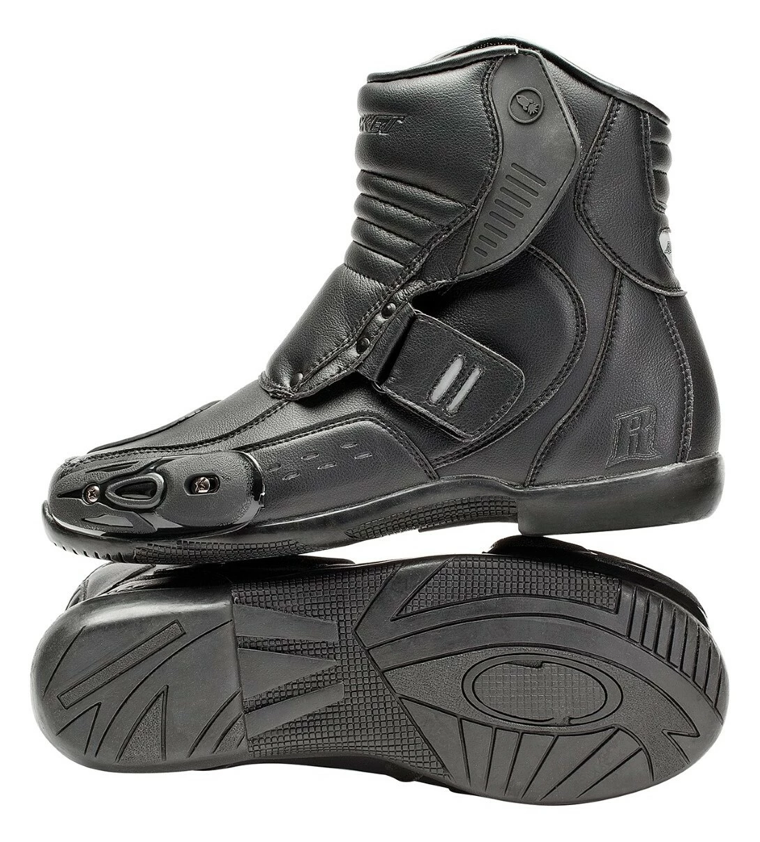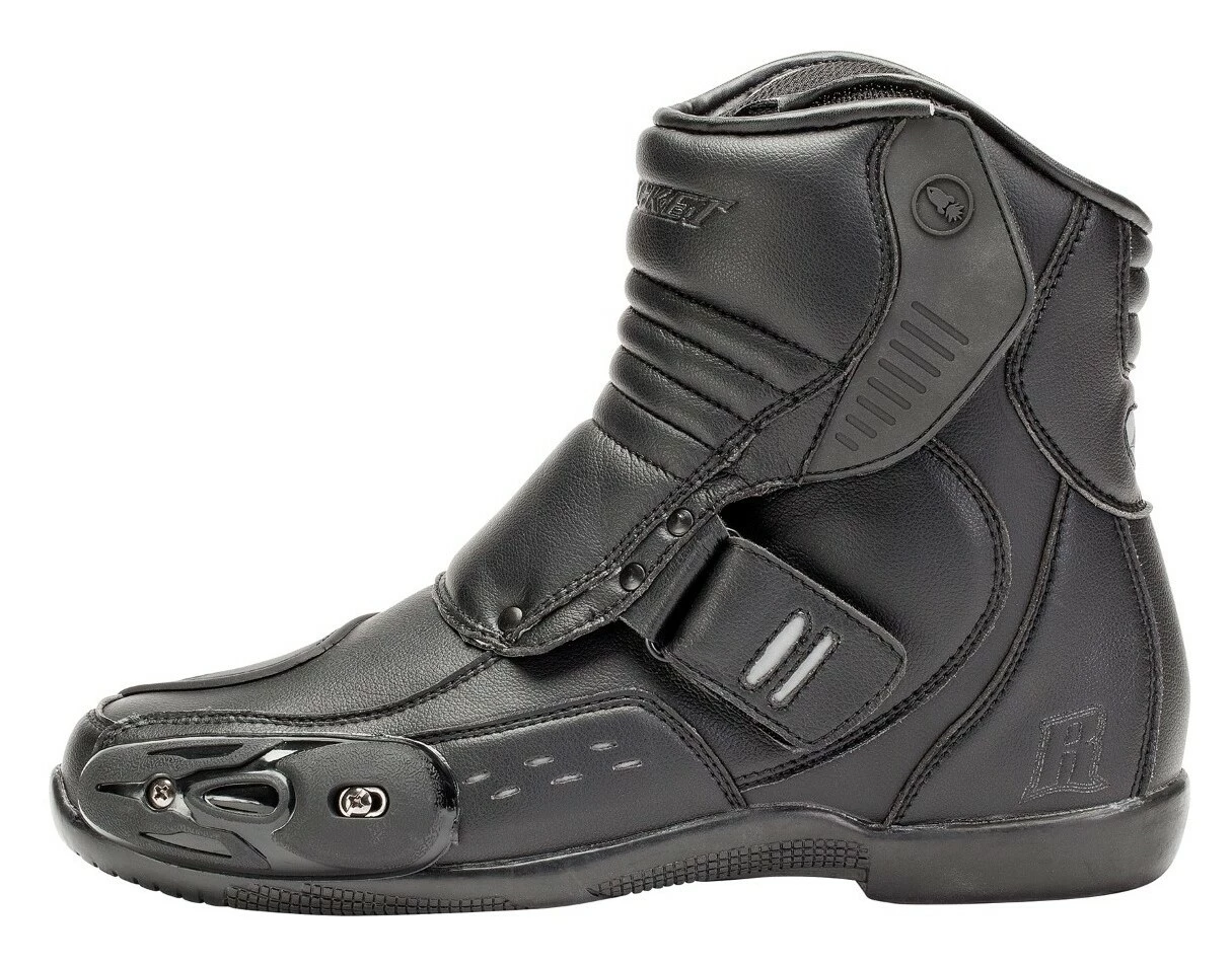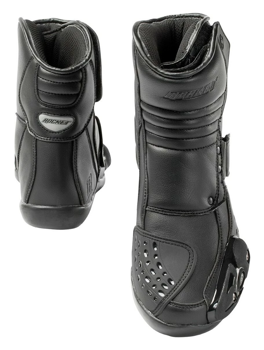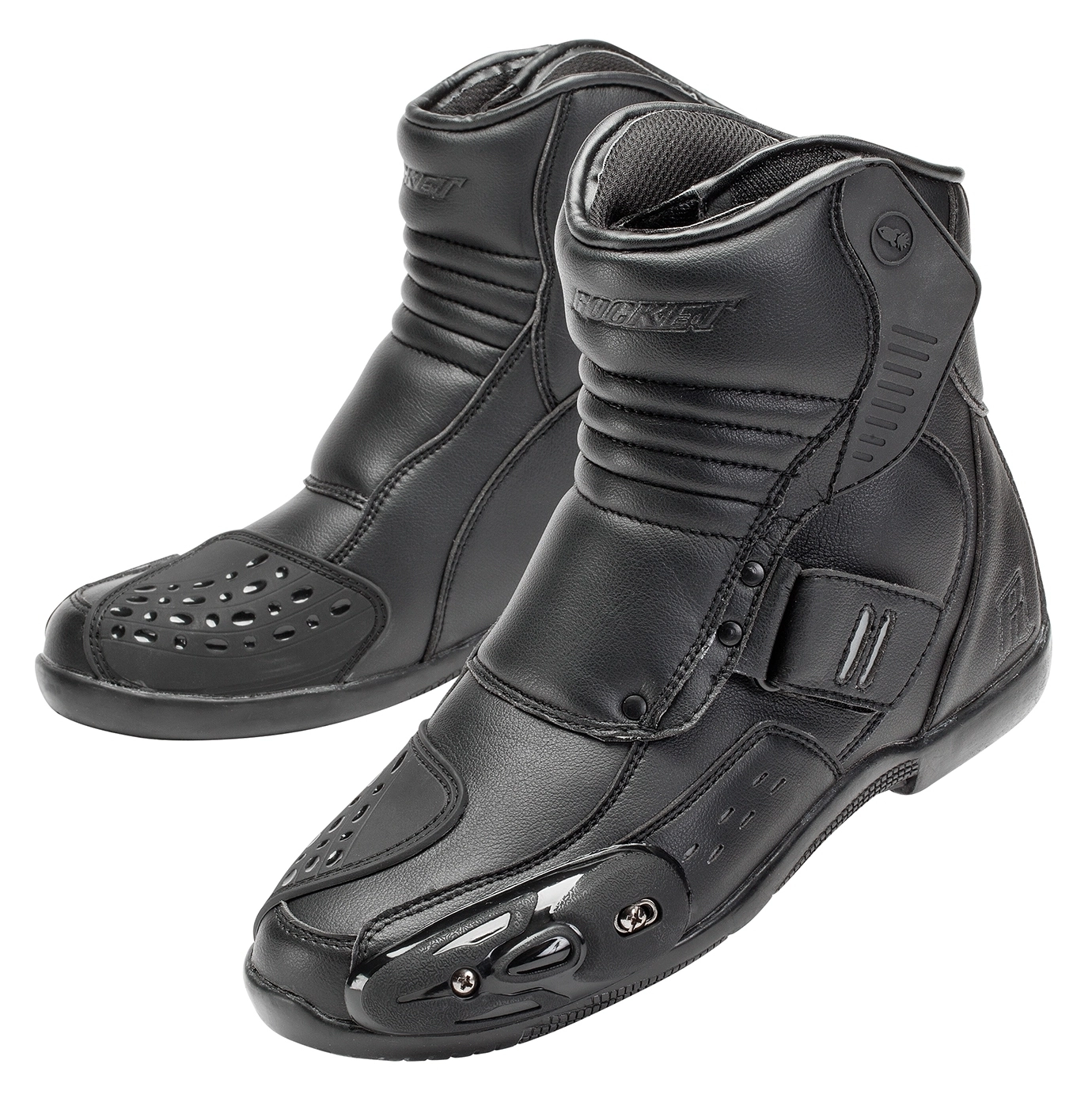 The Joe Rocket Razor Boots are a short, sport-oriented boot with integrated toe sliders, a low-profile toe box for added control and durable anti-slip soles.