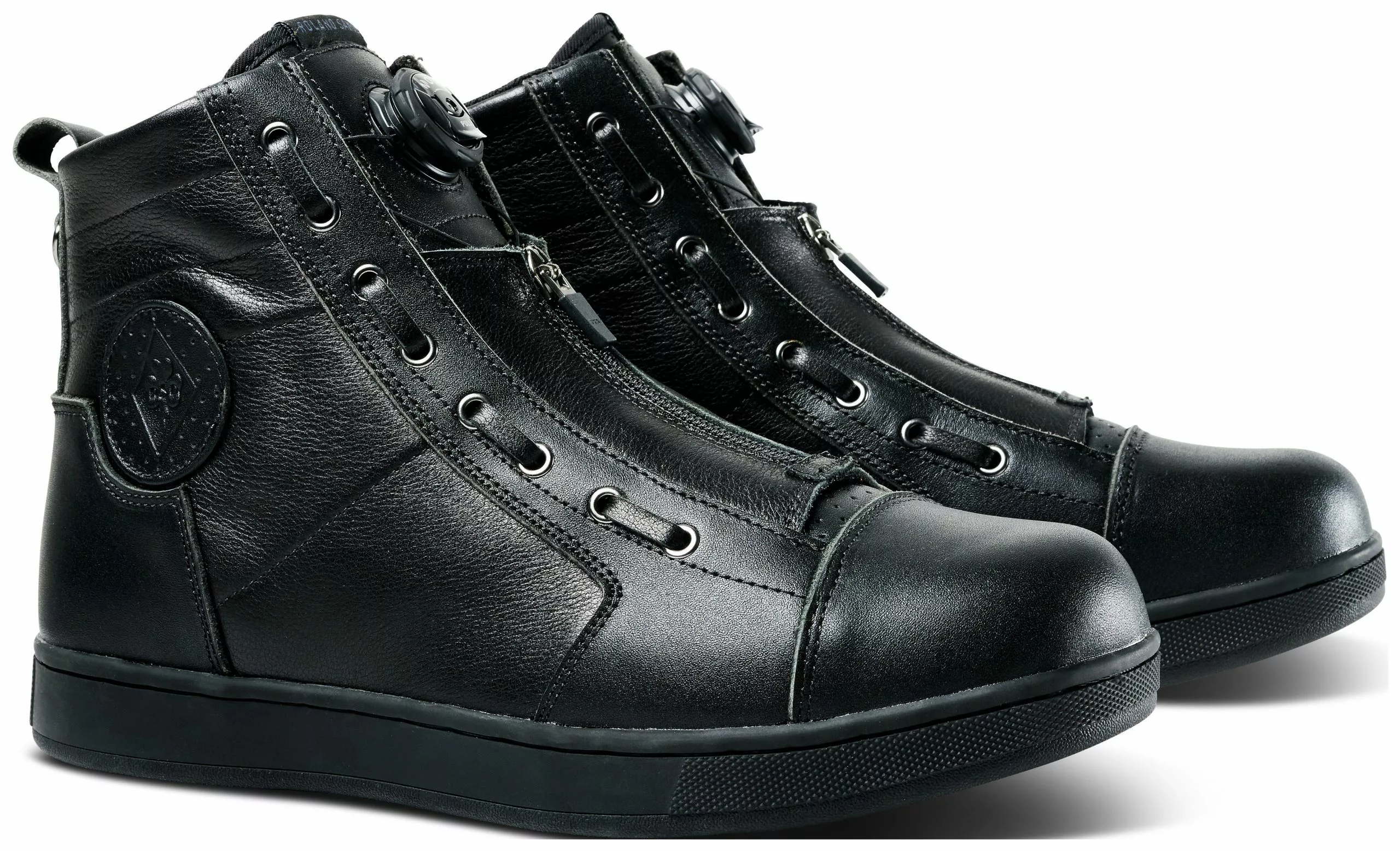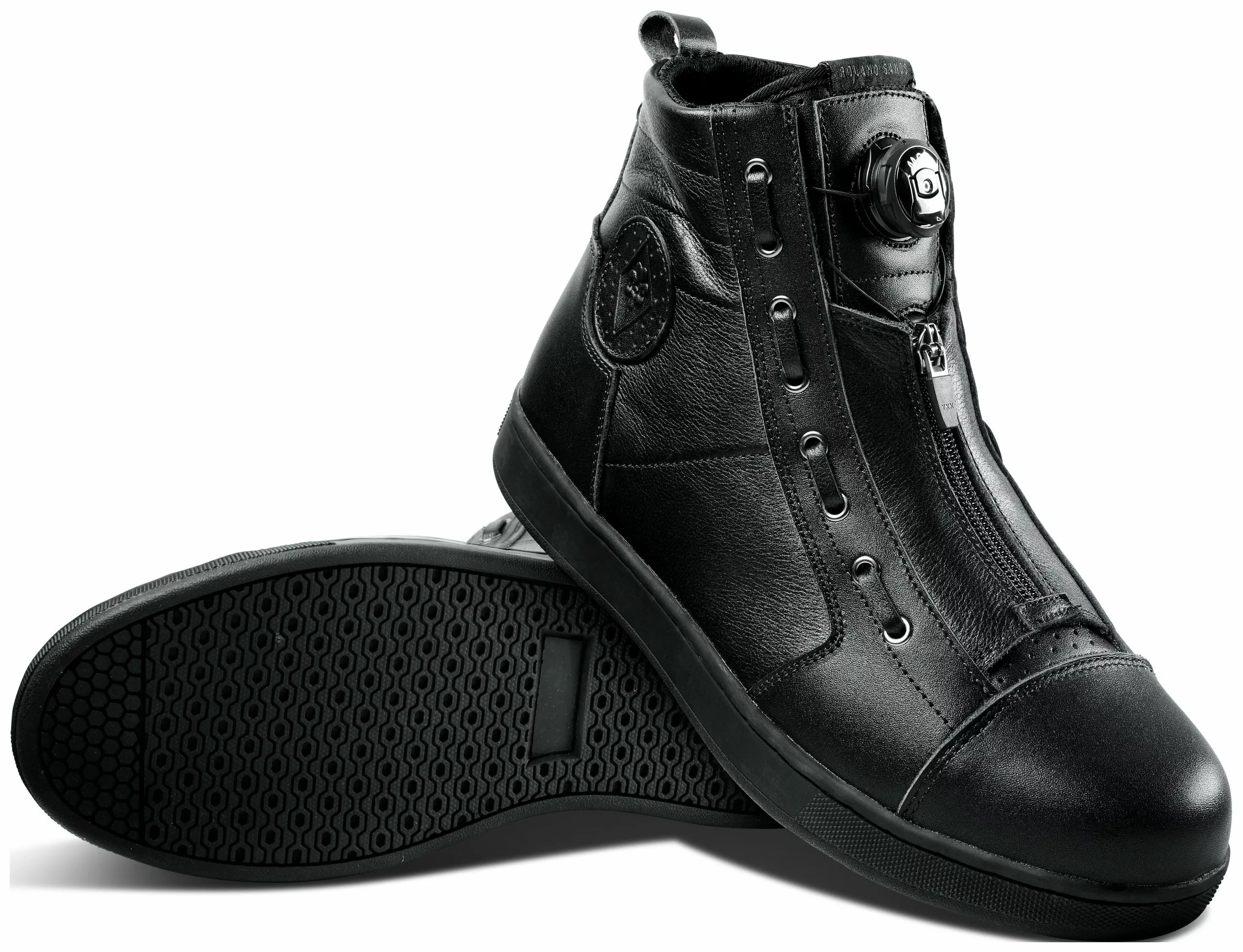 The Roland Sands Punk Race Shoes are constructed from premium full grain cowhide with a cub style anti-slip gum sole. The shoe itself is CE certified and features reinforced shank, toe, heel and ankles.