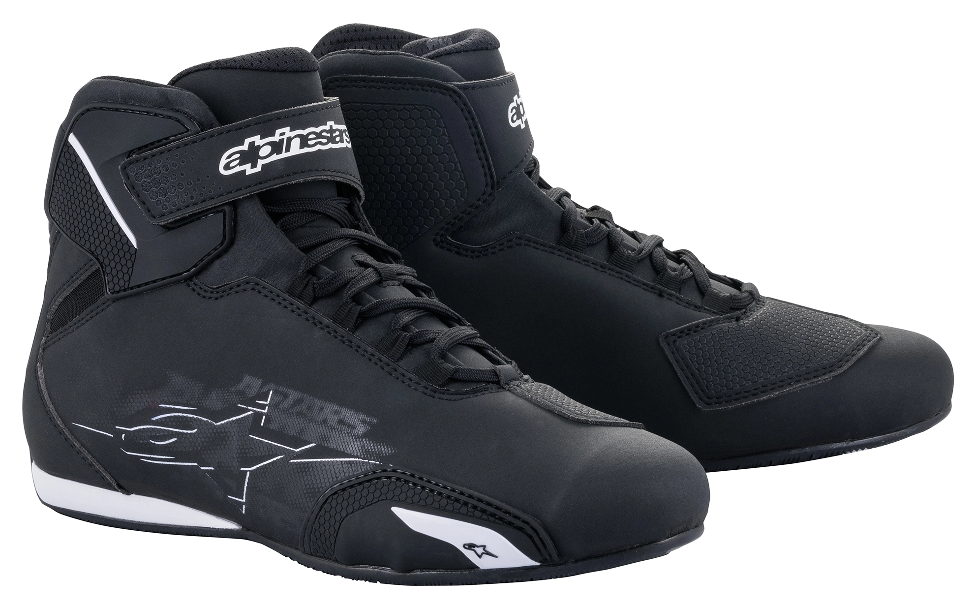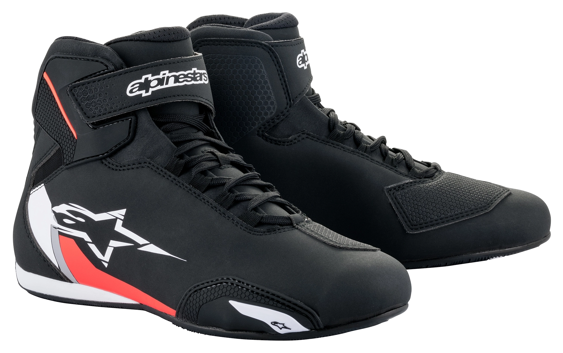 Alpinestars Sektor Shoes use durable lightweight microfiber to protect against abrasion without adding extra weight. Alpinestars’ speed lacing system and ankle straps make slipping into the Sektor boots quick and easy without undermining security. External TPR material at the toe helps to reinforce against abrasion.