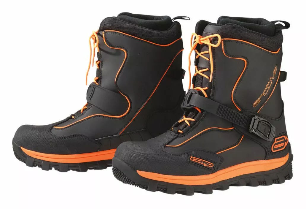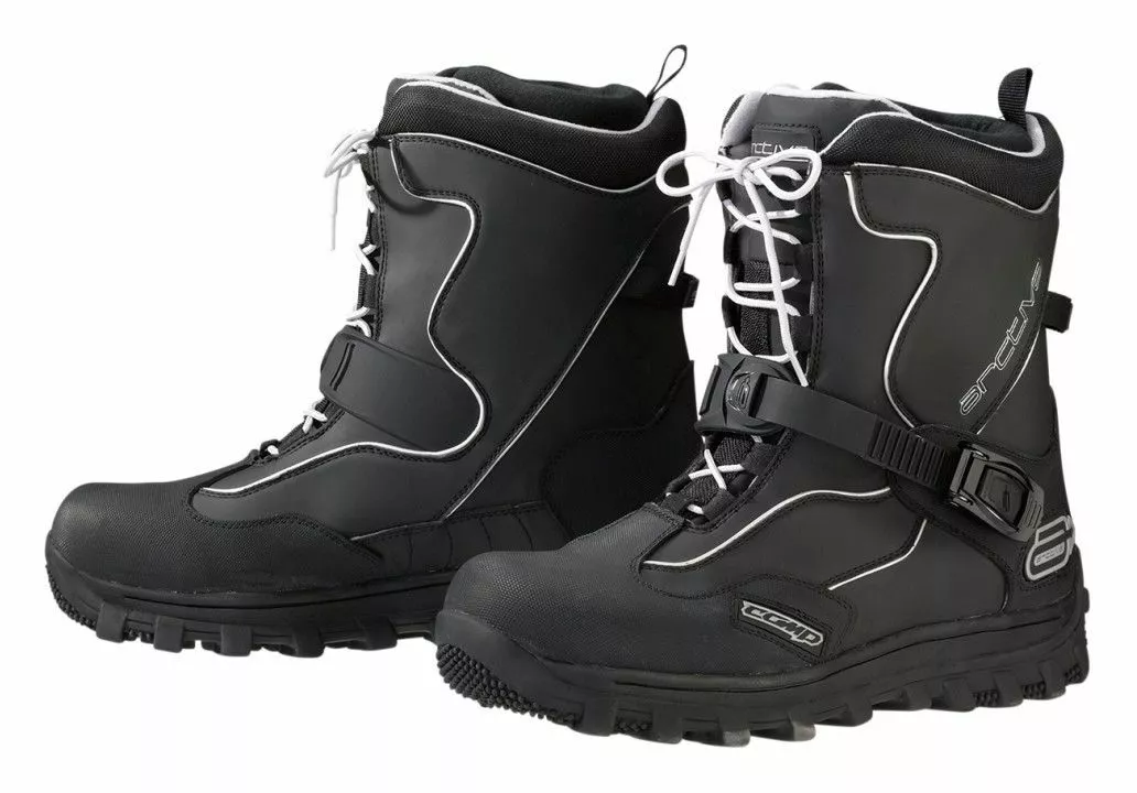 Comp Arctiva boots feature a removable insulated liner that has a high wicking fleece interior to keep feet warm and dry. At 10 inches tall, they are high enough to keep out snow, yet low enough for aggressive snowmobile riding. Its micro-adjustable, ratcheting forefoot power strap and fast lacing system holds the heel securely in place while keeping the foot from shifting inside the boot. The grip tread sole provides excellent traction on slippery surfaces. With an EVA mid-sole that provides a secure platform for the foot, the Comp is great for all types of outdoor winter activities. Rated to -40°F (-40° C)