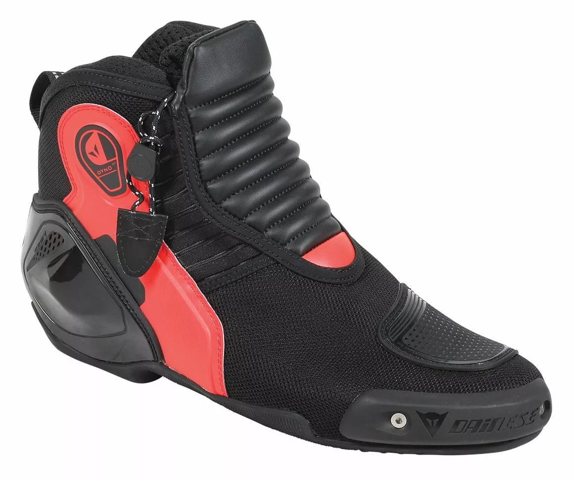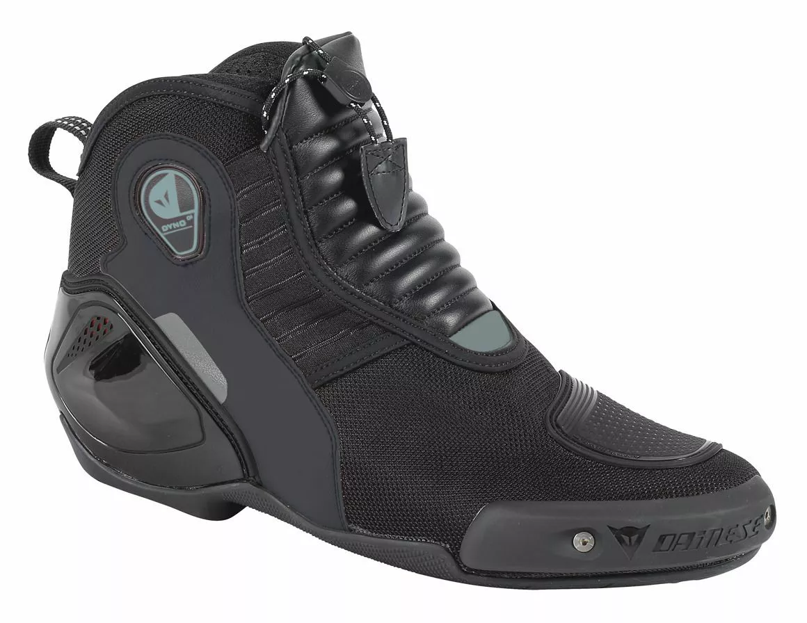 Taking many of the features found on the full-height race boots, the Dainese Dyno D1 Shoes are designed to give street riders increased protection mobility and comfort over your run-of-the-mill Nikes. Using a new type of foam padding, the Dyno D1 Shoes have a slimmer profile and weigh less than previous versions, all while increasing impact absorption capabilities. The Dyno increases control and comfort with an integrated flex zone has been added to the backside of the shift pad, a microfiber stretch panel over the instep and a non-slip race sole.