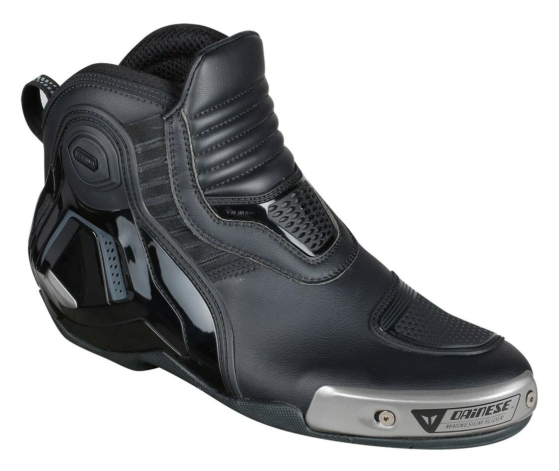 Bristling with race grade protection and features, the Dainese Dyno Pro D1 Shoes are the direct descendant of Dainese’s top-of-the-line race boots. Using a new type of foam padding, the Dyno D1 Shoes have a slimmer profile and weigh less than previous versions, all while increasing impact absorption capabilities. The Dyno increases control and comfort with an integrated flex zone has been added to the backside of the shift pad, a microfiber stretch panel over the instep and a non-slip race sole. Magnesium inserts and toe sliders cut the weight down even further to keep street riders mobile and dynamic in the saddle.