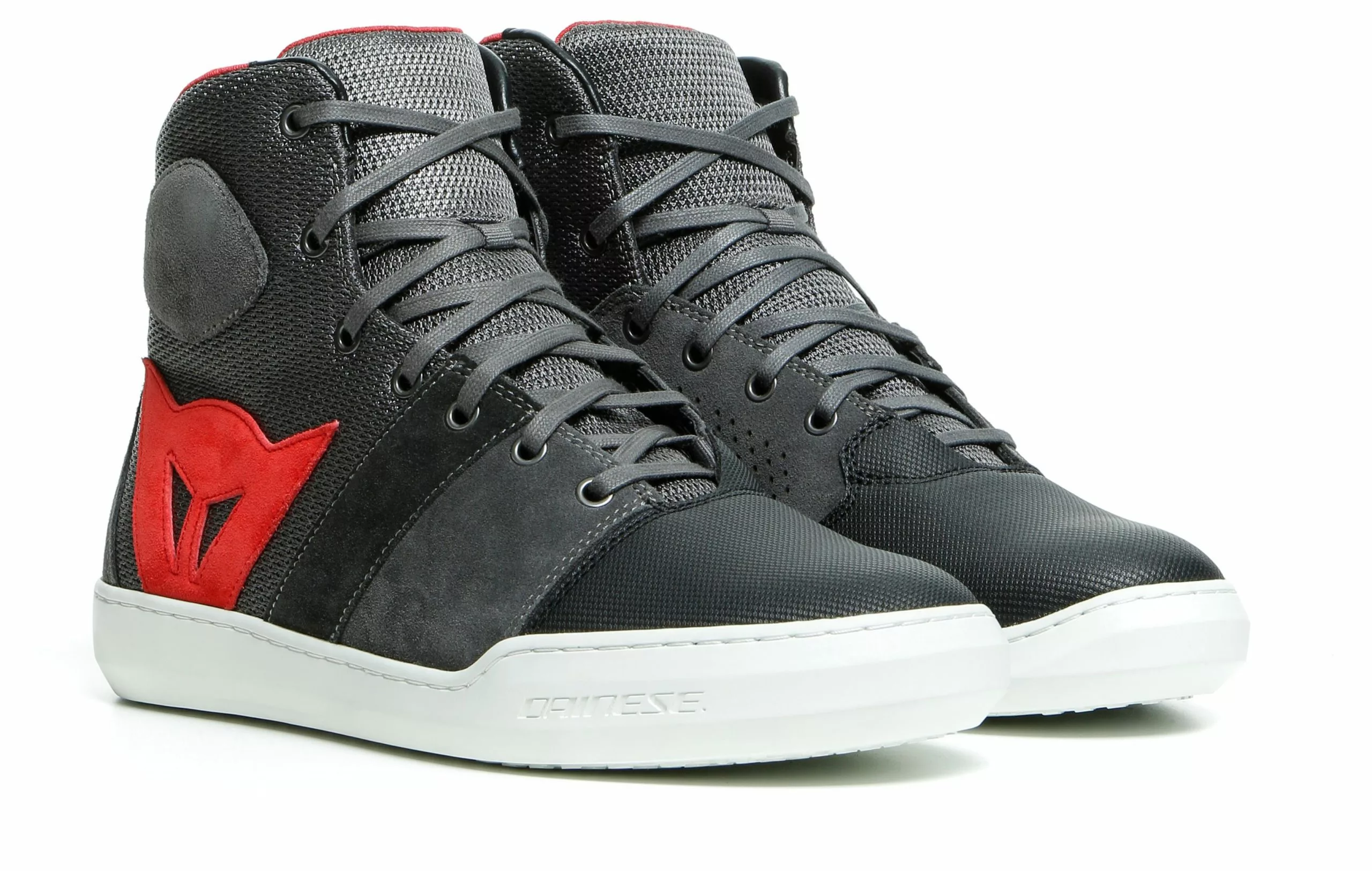 The Dainese York Air Shoes are lightweight and stylish, yet still provide protection for the urban motorcyclist. Rigid inserts along the ankle help keep your feet in place, while a redesigned rubber sole is stiff for extra protection. A gear shifter guard keeps your kicks from getting chewed up from your aggressive upshifts when the light turns green. Mesh and lightweight materials are perfect for hot weather riding.