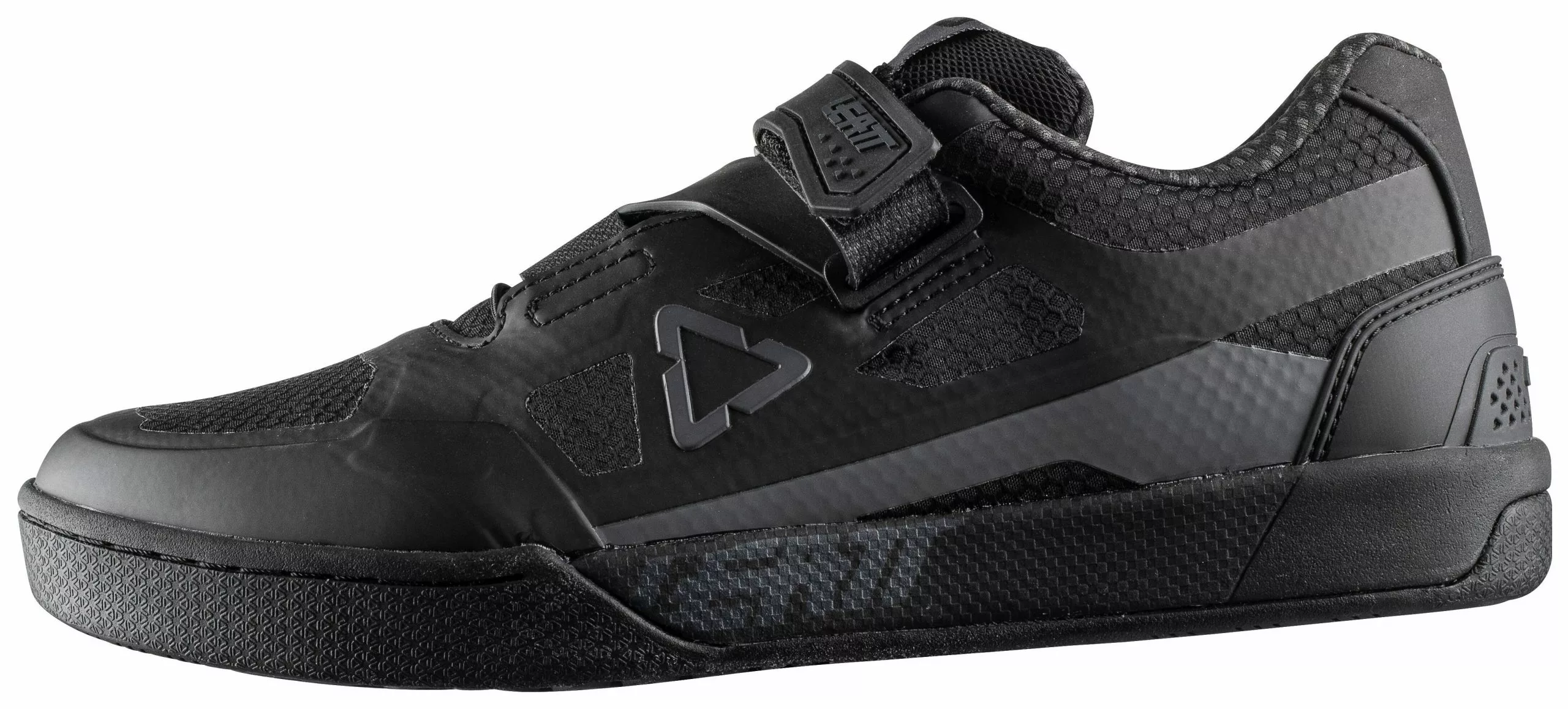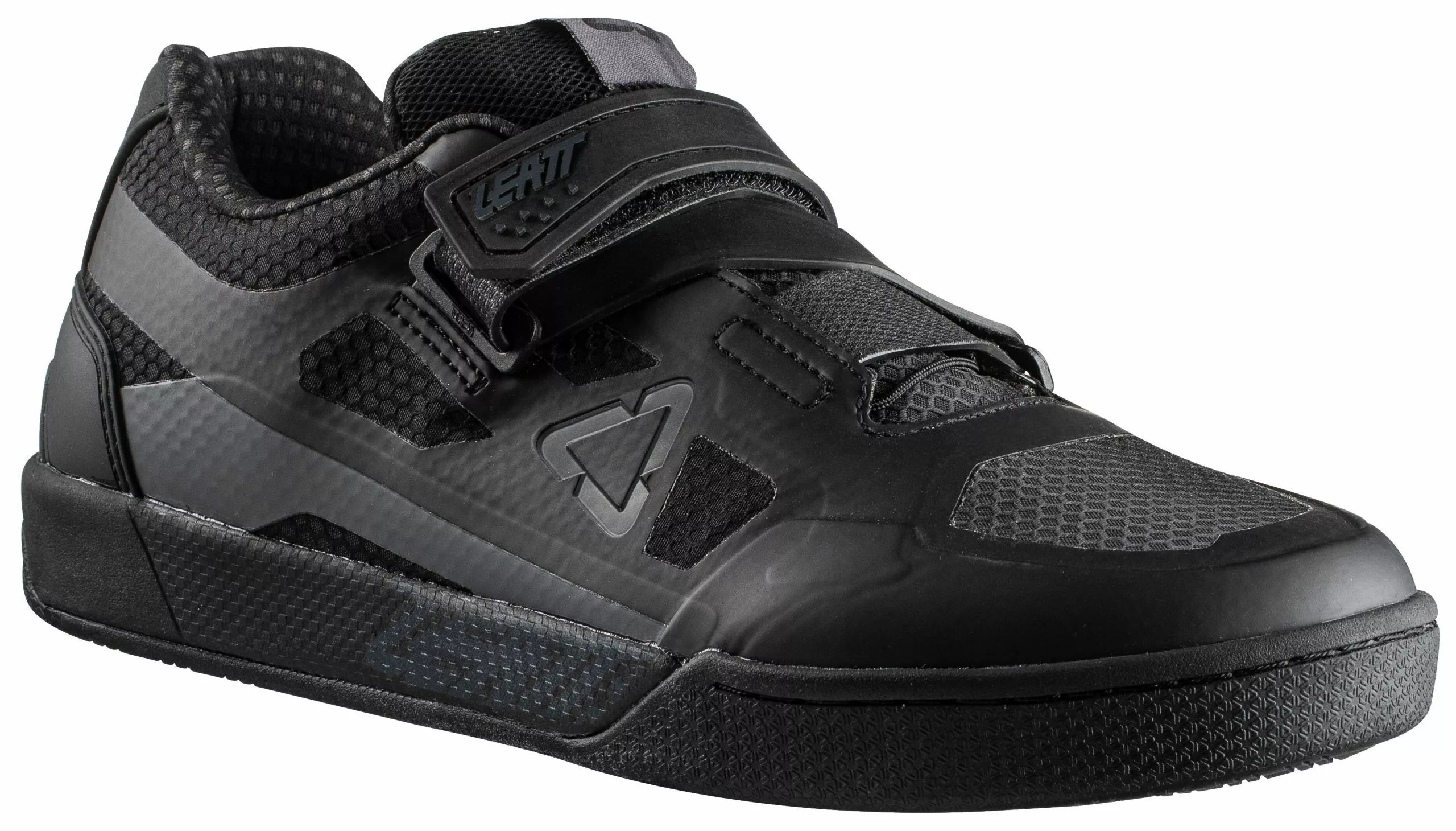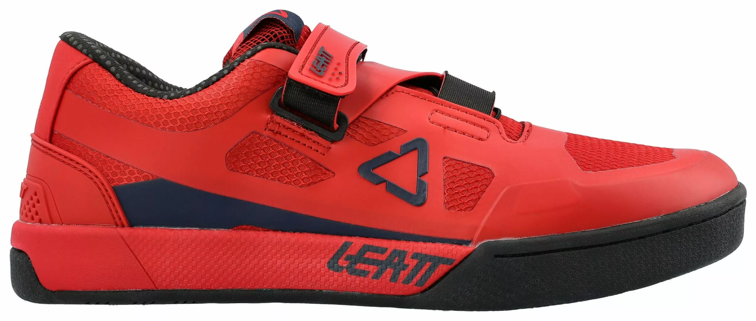 Crush those personal goals and set your bar higher with the MTB 5.0 Clip Shoe from Leatt. Featuring a deep, 25mm indexed cleat channel, the forward settings guarantee great pedal efficiency while the 15mm rear extension adds stability and comfort for rigorous gravity riding. Providing a water resistant outer shell and great ventilation, the MTB 5.0 Clip Shoe makes an ideal all round, multi discipline shoe for fast rides. Leatt prides itself in their secret rubber recipe, which produces the incredible RideGrip rubber compound found throughout the shoe that aids in ultimate bike control in all weather conditions. The sole also features mud channels which efficiently keep the mud off the soles so that you are in constant contact with your pedals or the ground. Fitted with speedlaces and cross-straps for added stability and control, the Leatt MTB 5.0 Clip Shoe is THE all-in-one shoe that lets you train on your hardtail, crush an enduro race or jam out on the downhill track.