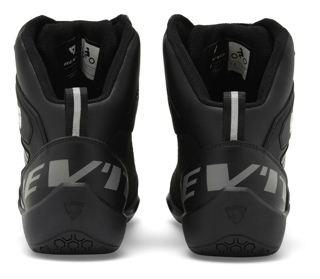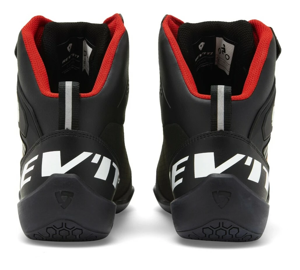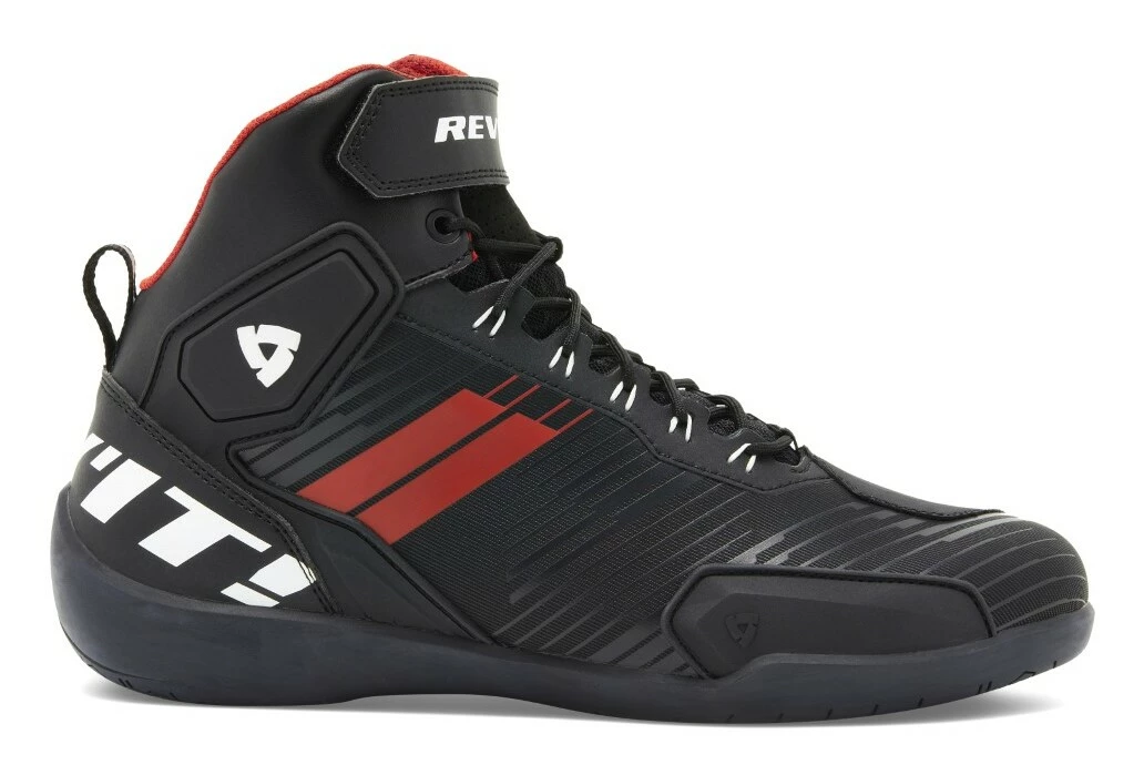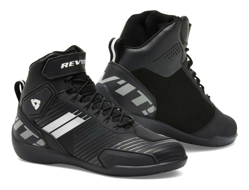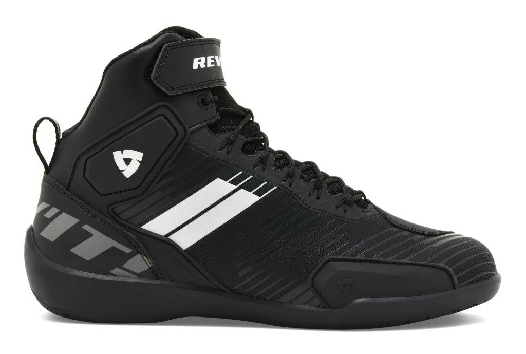 The G-Force Riding Shoes take inspiration directly from the worlds of MotoGP and WSBK and distill racetrack style into a practical, everyday riding shoe. REV’IT! applies a barrage of materials to add protection, manage airflow and add a bold, technical style to the G-Force Shoes. A tough synthetic leather exterior, injected ankle cups and thermoformed heel cups and toe caps manage the shoes’ safety component. In terms of ventilation, perforation can be found at the inner panel of the upper and along the tongue. The track styling ensures a snug, low profile feeling when on the foot, and the inclusion of the OrthoLite X40 insole adds overall comfort.