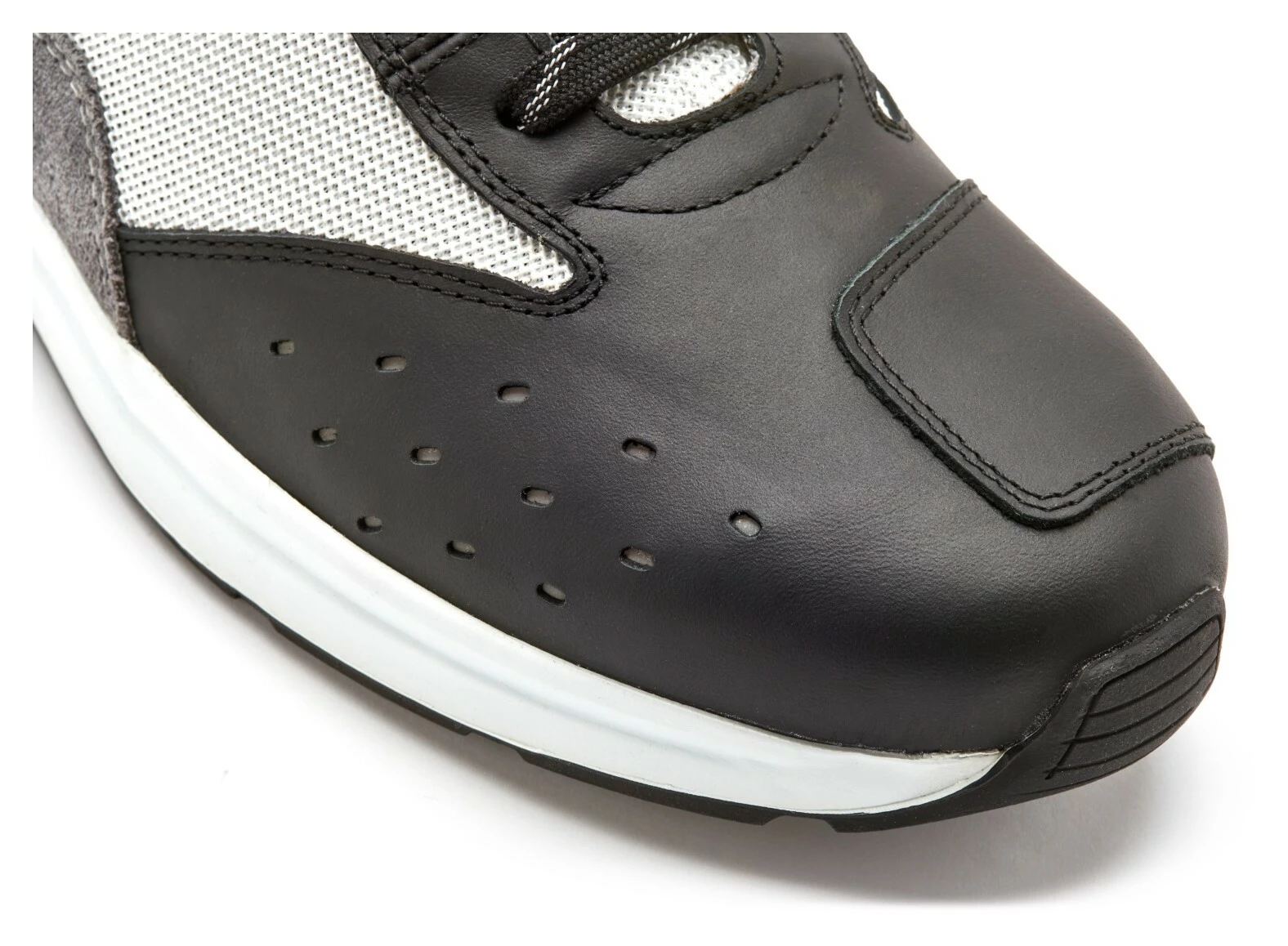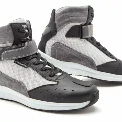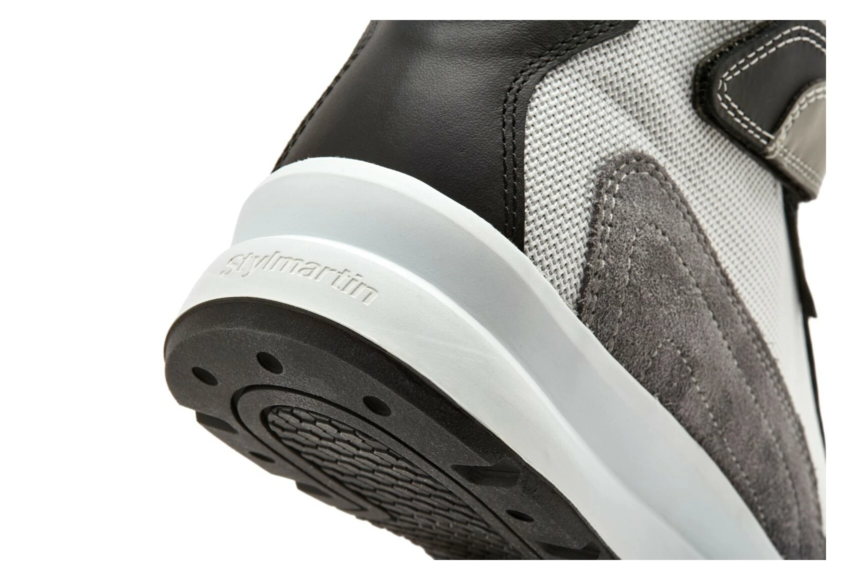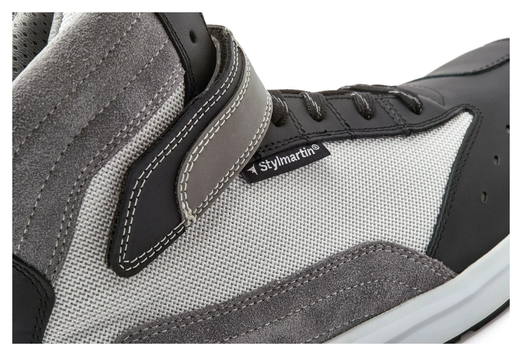 The Stylmartin Audax Air Riding Shoes are the high tops for the sneakerhead motorcyclist. A leather, suede and fabric upper give the appearance of an old school high top. Perforation is incorporated into the shoe for airflow and also used as a new element of style – with oversized holes for airflow at the toe. A hook and loop closure at the ankle secures laces and ensures the Audax Airs stay strapped no matter how unwieldy you are on your hoverboard.