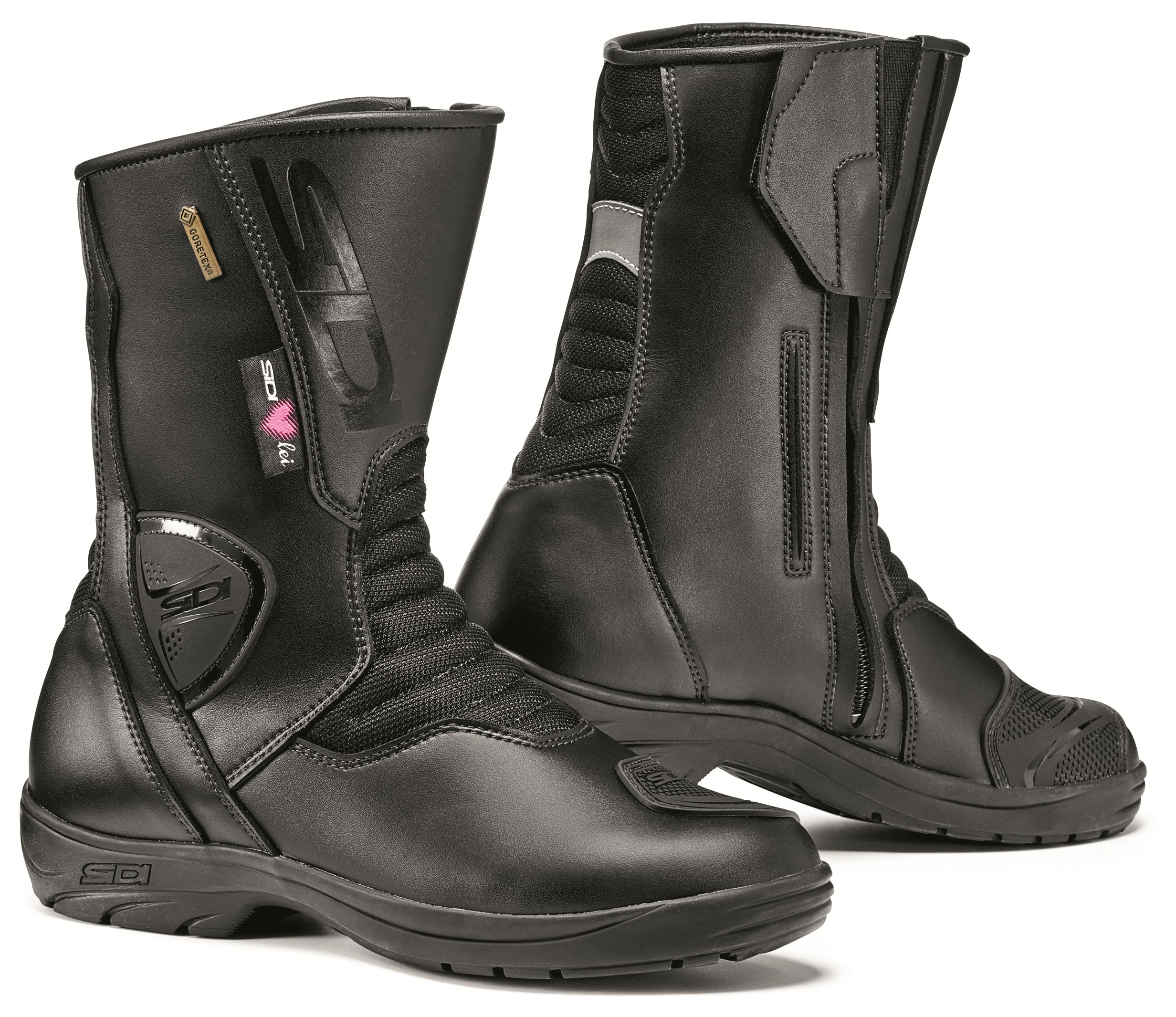 Named after a treacherous mountain pass high in the Italian Alps with both breathtaking views and knuckle-whitening curves, the SIDI Gavia Women’s Boots are designed for riders who enjoy soaking in the sights as much as the pure adrenaline of the ride itself. Mid-high sport touring boots of the highest caliber, the SIDI Gavia Gore-Tex Women’s Boots feature SIDI’s new Full Grain Microfiber synthetic leather upper construction, double-stitched at all stress points for maximum durability. Microfiber yields superior weather rejection, while also promoting moisture evaporation through the material to allow the Gore-Tex waterproof and breathable membrane to perform to its full potential. Both external and internal ankle protectors as well as heel and toe inserts provide safety without compromising flexibility. Removable arch support pads, Cambrelle lining and ample elastic stretch panels enhance fit and long range touring comfort, making the SIDI Gavia Gore-Tex Women’s Boots an excellent choice for sport tourers looking for Gore-Tex weather protection that can go the distance.