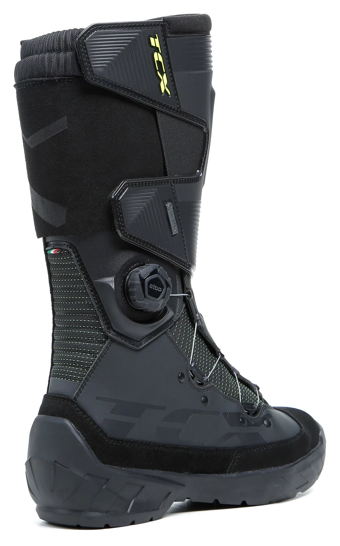 For the rider whose adventures are limitless, the TCX Infinity 3 Gore-Tex Boots are up to the task! The OrthoLite footbed provides long term cushioning you can depend on and the on-fly reel dial makes it a breeze to adjust for the perfect fit, even while riding. Even when mother nature throws tough hazards your way, the Gore-Tex Performance Comfort membrane will keep you dry and ergonomic shin plates, ankle, toe and heel protection keep you safe. The Groundtrax rubber outsole ensures maximum grip on and off the bike and gives you ultimate control when standing on the pegs of your motorcycle.