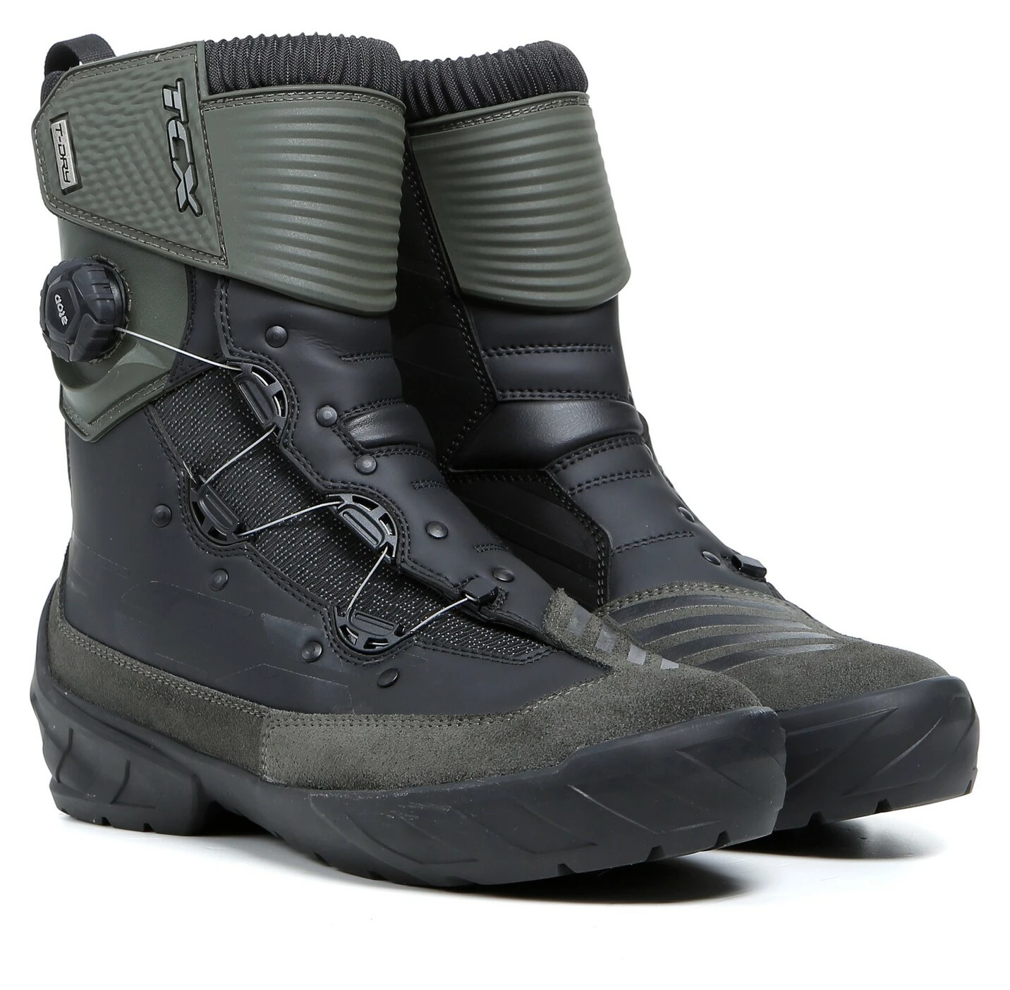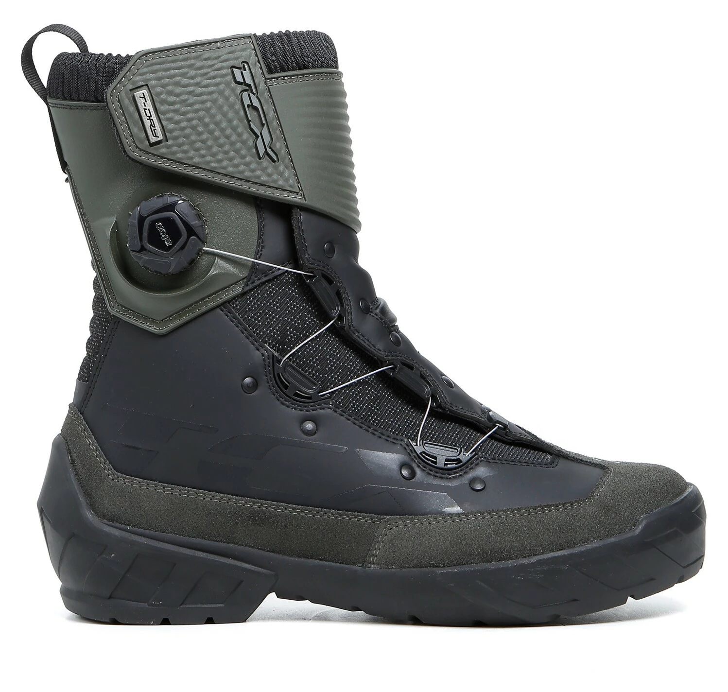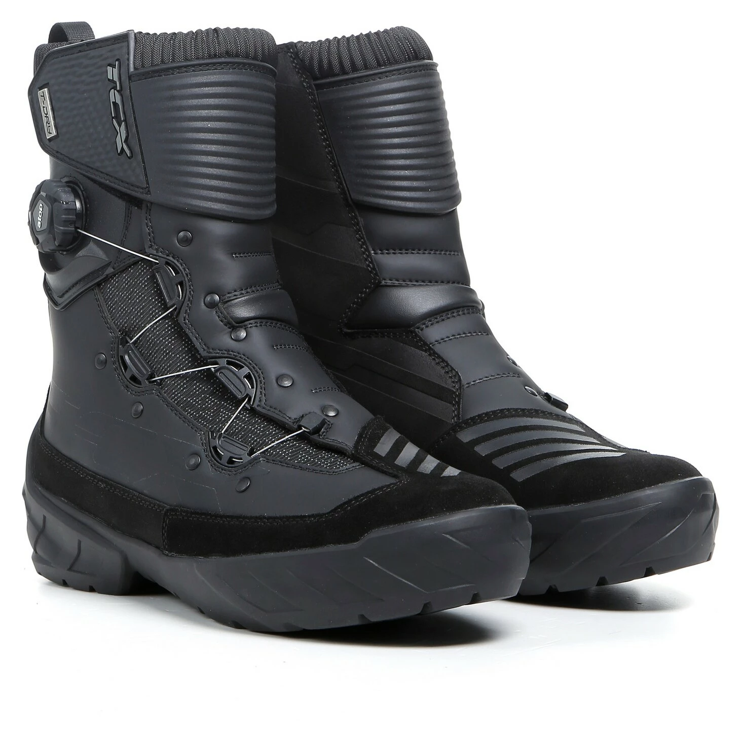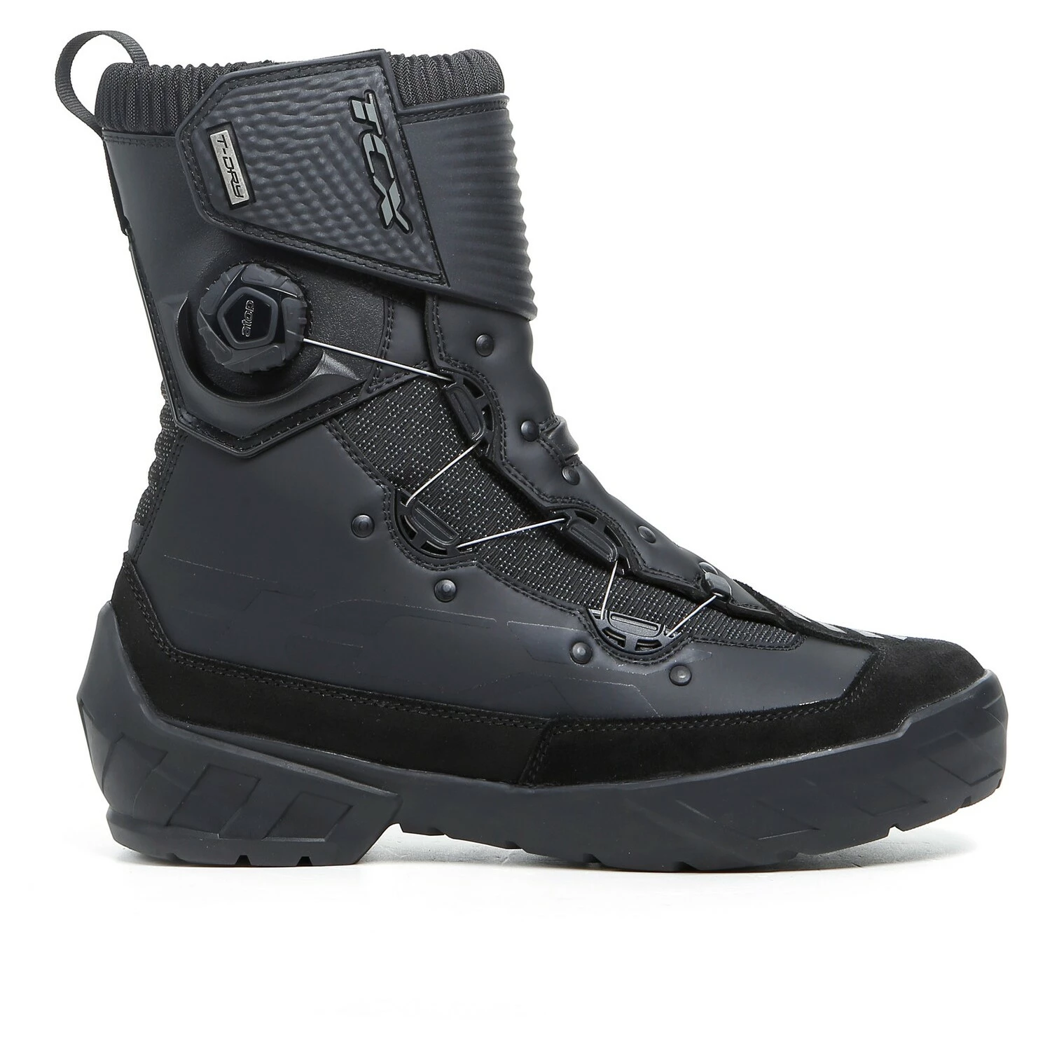 For the rider whose adventures are limitless, the TCX Infinity 3 Mid WP Boots are up to the task! The OrthoLite footbed provides long term cushioning you can depend on and the on-fly reel dial makes it a breeze to adjust for the perfect fit, even while riding. Even when mother nature throws tough hazards your way, the T-dry waterproof membrane will keep you dry and ergonomic shin plates, ankle, toe and heel protection keep you safe. The Groundtrax rubber outsole ensures maximum grip on and off the bike and gives you ultimate control when standing on the pegs of your motorcycle.