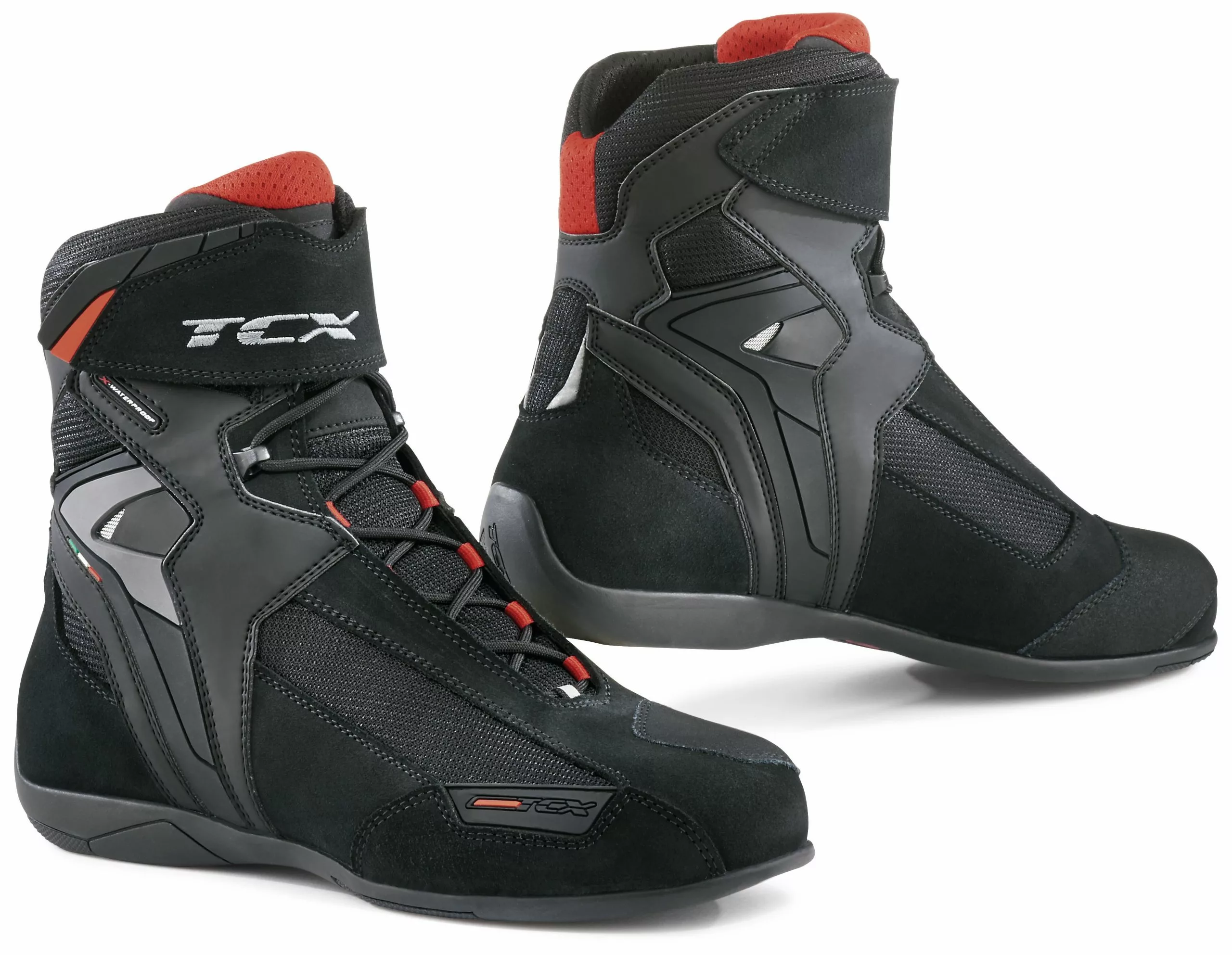 From commute to tour, the TCX-Vibe Waterproof Boots were designed to let the good vibes roll. The durable suede leather upper and waterproof membrane combine with Air Tech fabric lining to keep your feet comfortable on long rides. PVC micro-injected ankle guards on either side and bycast leather shift pad offer moto-centric amenity. Specially-designed high performance soles offer excellent grip on the pegs and the street, in wet or dry conditions.