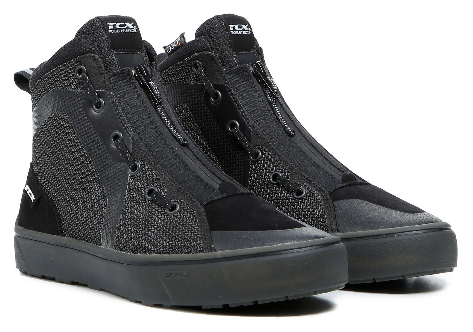The Ikasu Air Riding Shoes rep a long list of features that includes impact-mitigating D3O ankle cups, a reinforced crush resistant midsole and reinforced toe box. Matching the exterior is a mesh liner to boost airflow around the foot. The Groundtrax outsole receives a rugged, self-cleaning tread pattern, and Ortholite designs the supremely comfortable footbed and insole. Engineered by TCX, the ZPLATE midsole balances resistance to lateral crush forces with good front-to-back flexibility for comfortable walking.