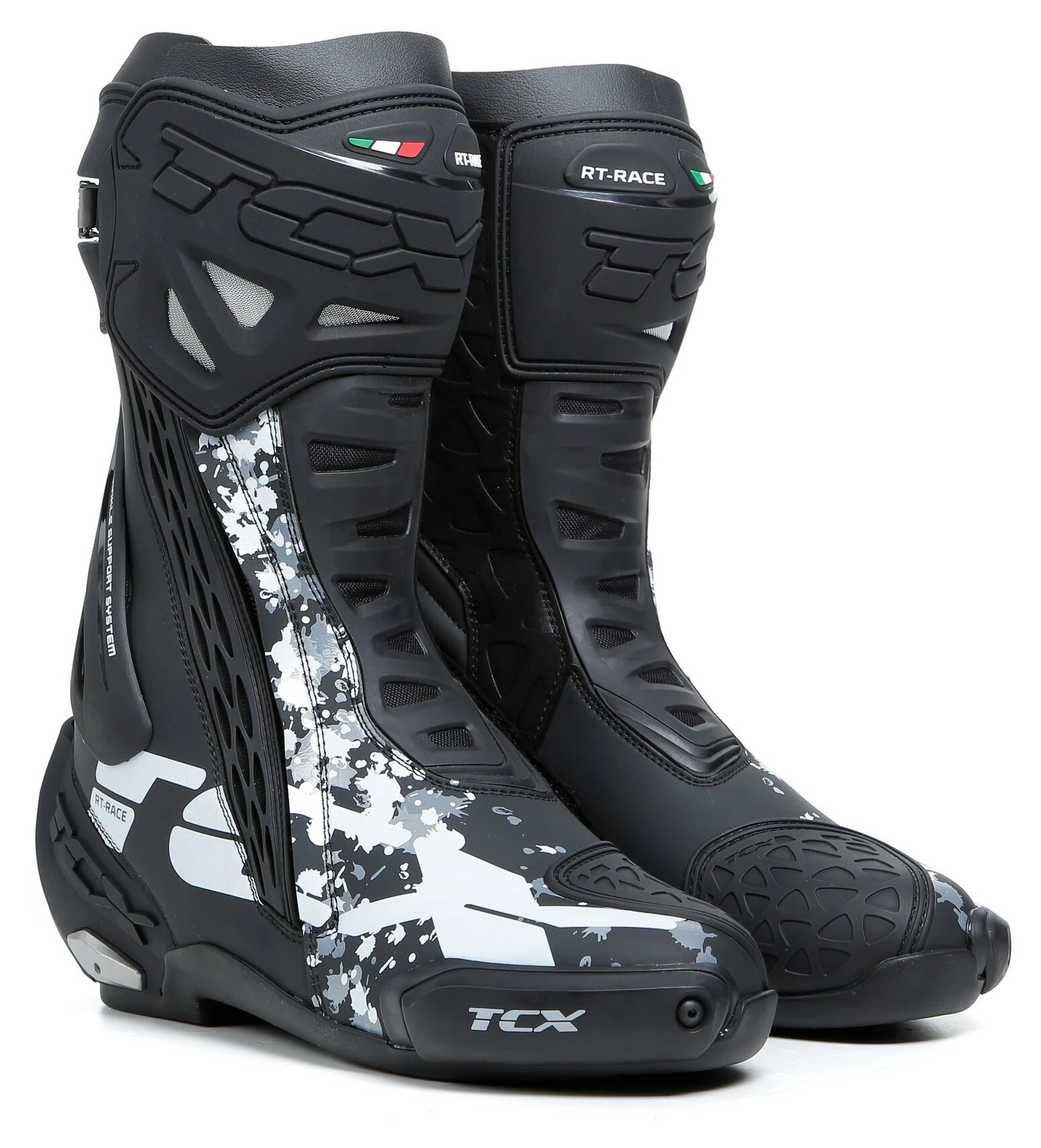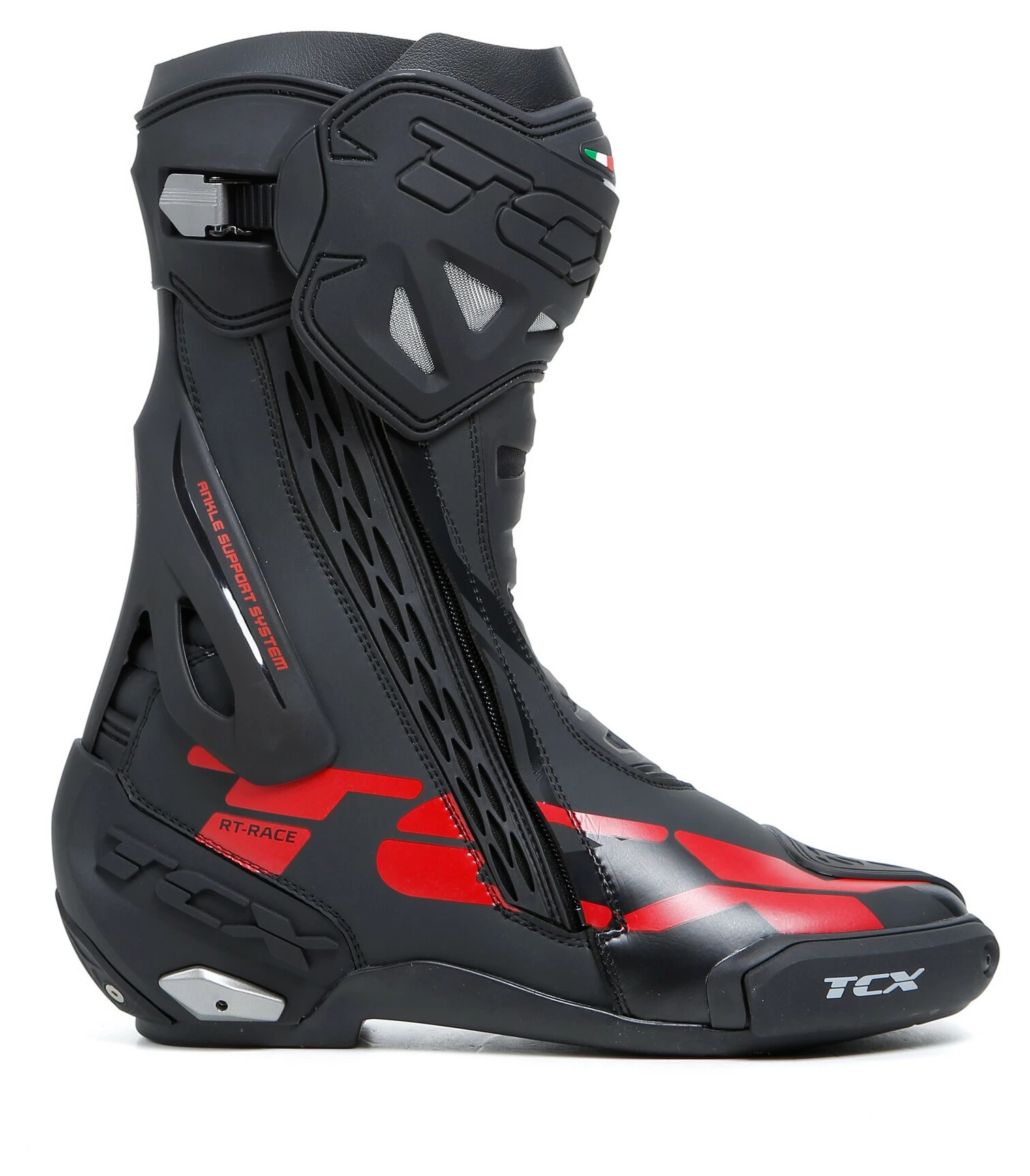 Designed for maximum control at the track, the TCX RT-Race Pro Boots achieve a high level of dexterity without sacrificing protection. To maintain a lightweight construction, the RT-Race Pro Boots use durable microfiber and strategically-designed injection-molded components, including the polyurethane shin plate and shift pad, front and lateral panels, heel counter and Double Flex Control System.