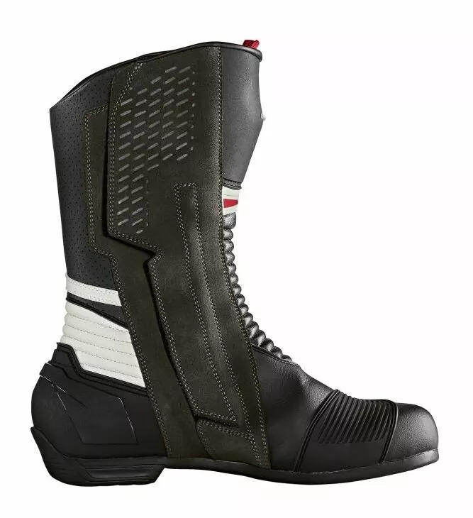 The BMW Pro Race GTX Boots look slick and will keep you dry and stylin’ when the twisties get slippery. Breathable and waterproof Gore-Tex membrane backs the synthetic leather shell so you will stay dry even when the forecast calls for rain. Replaceable toe sliders let you push your limits without ruining your kicks. The BMW ProRace Boots are ready for sporty riding even if the forecast calls for rain.
